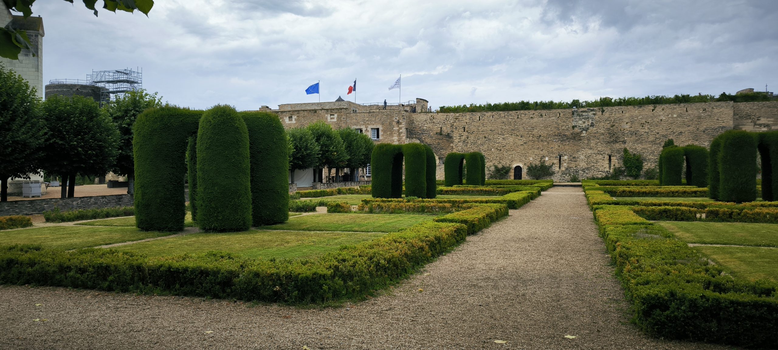 Le logis n’est pas meublé, mais les expos étaient intéressantes. Les jardins sont magnifiques et même si je me suis pris une ondée en les traversant ce n’était pas grave. Il y a une certaine sérénité à s’y balader, on y retrouve le condensé d’Anjou dans ces jardins notamment avec les vignes, tout est soigné.