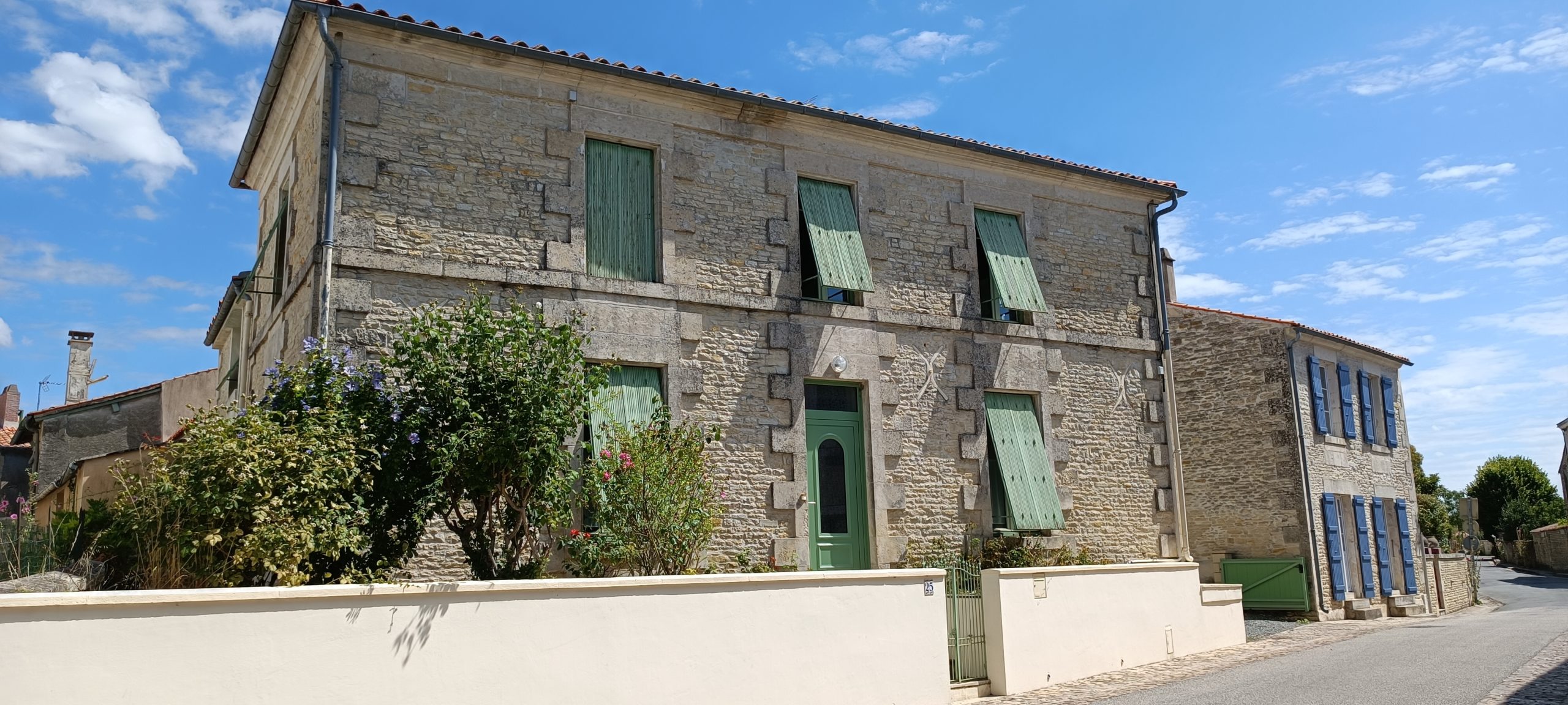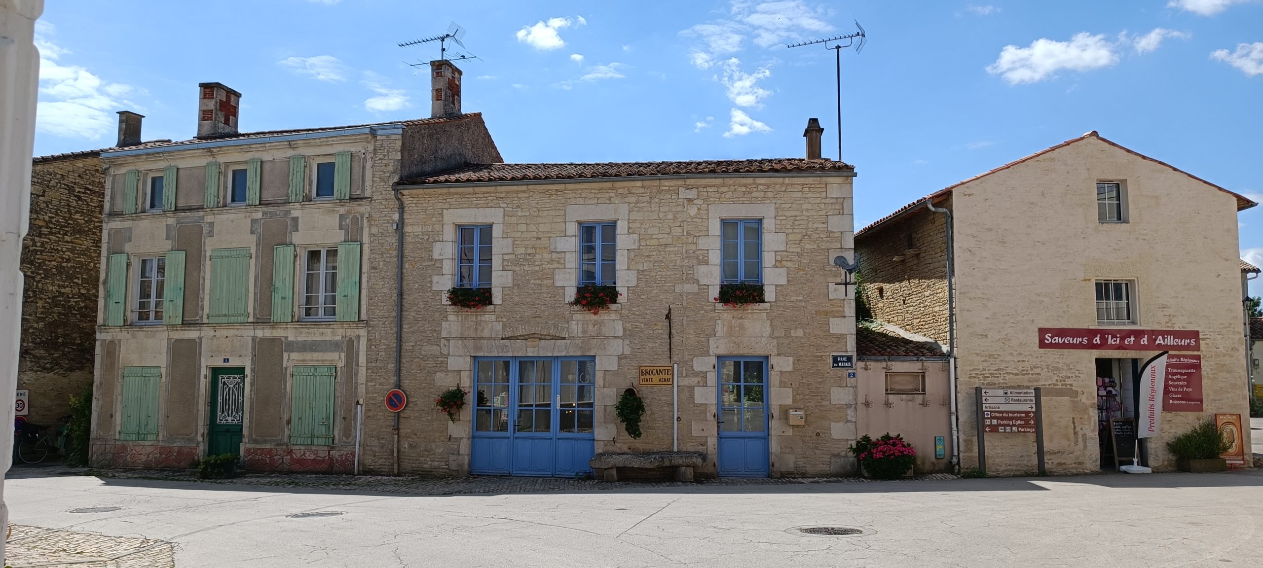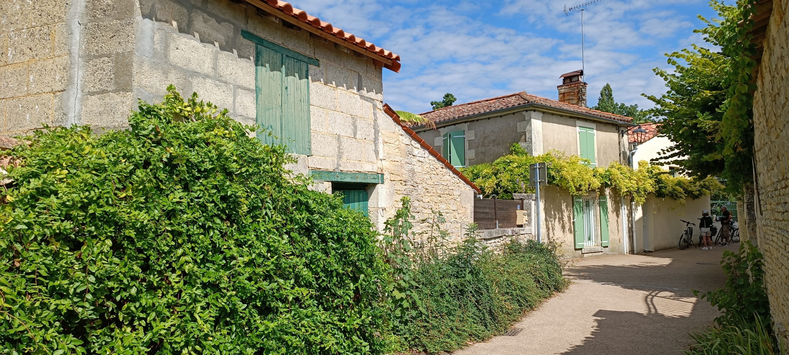 Nous avons donc choisi Arçais. Un petit bourg de 600 âmes doté du label Petite Cité de Caractère depuis 2013. Les maisons de pierre ont beaucoup de cachets et on découvre les balais ; ce sont d’anciennes granges maraîchines où l’on stockait autant les marchandises que le matériel. C’est suite à un décret de Napoléon 1er que les canaux ont vu le jour à Arçais.