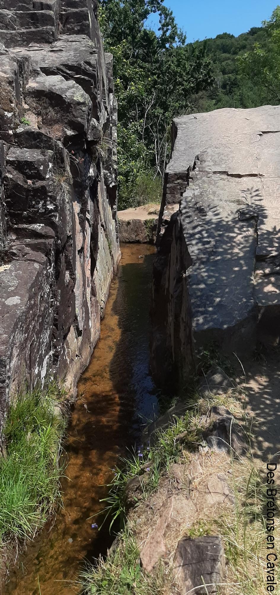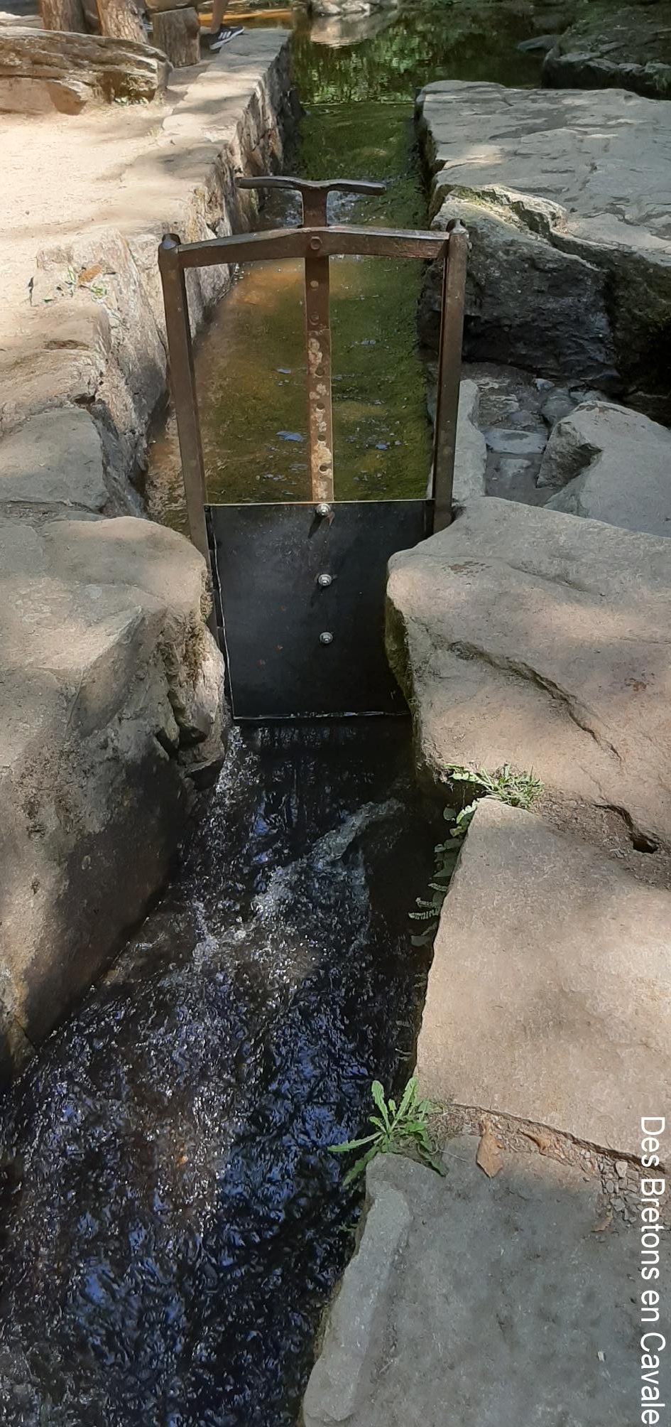 Long d’1 km 500, la pente est seulement de 0,5%. Tantôt à flanc de falaise tantôt dans la roche. On raconte qu’un gros bloc de granit se trouvait sur le passage du canal. Etienne de Vielzot dit d’Obazine (Fondateur et 1er abbé de l’abbaye d’Obazine) leva la main, béni le rocher et le rocher s’est fendu !