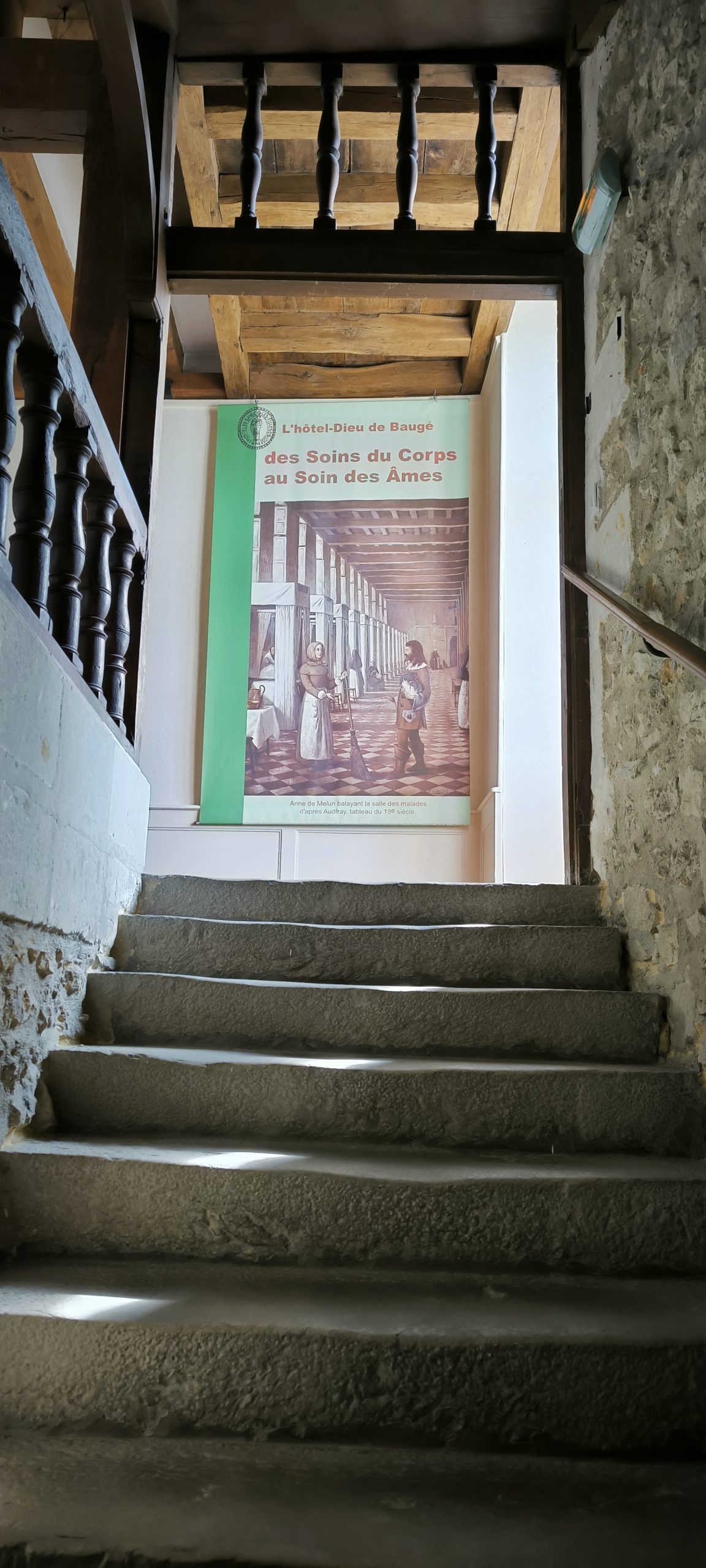 Comme expliqué ici, je suis allée au château de Baugé en premier et vu l’heure qu’il était, la personne de l’accueil m’a conseillé de commencer par la visite de l’Hôtel-Dieu. J’arrivais pile-poil pour la visite guidée!!