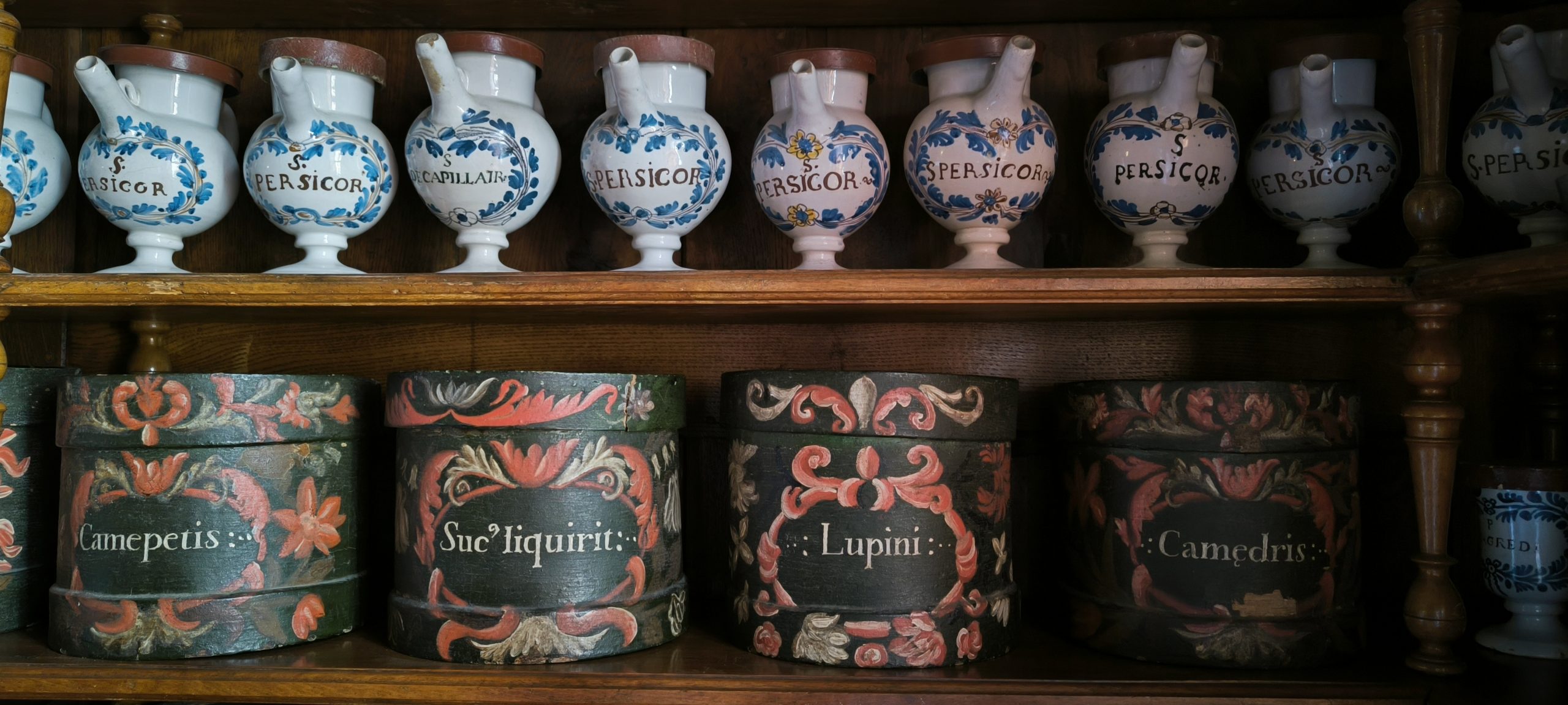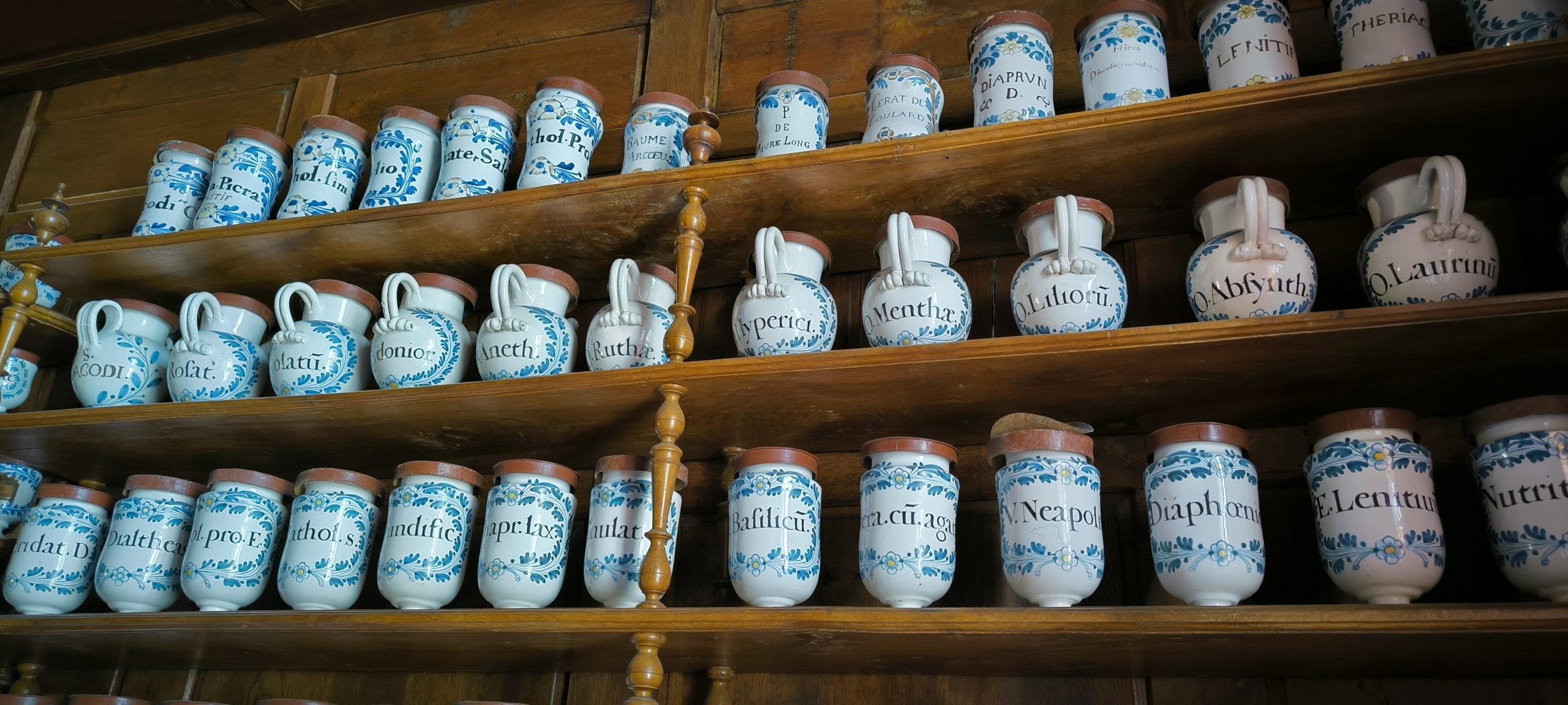 Elle est là depuis 1675 et rien n’a changé depuis !! Plus de 600 pots de toutes sortes se cotaient sur les étagères de cette petite pièce. À l’intérieur, des ingrédients qui peuvent être un peu intrigants. Cette pièce est vraiment impressionnante. Elle est inscrite aux Monuments Historiques.
