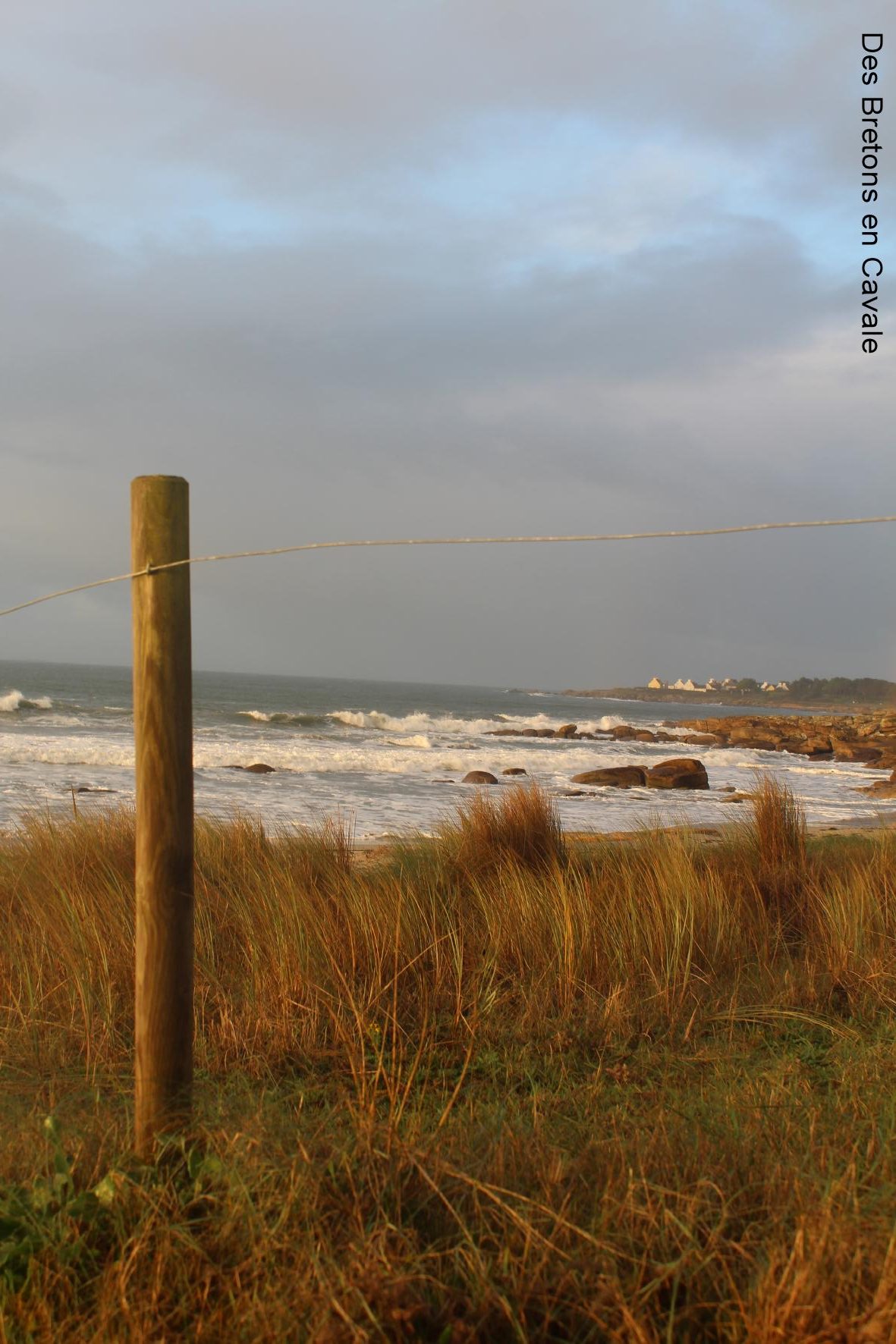On avait vu un 1er endroit mais trop en pente, pas cool sinon top pour la vue … face à la mer. On a continué notre chemin en direction du phare de Trévignon et on a trouvé un parking juste en bord de route, de l’autre coté de la dune … la mer avec la plage de Don et personne …. IMPECCABLE ^^