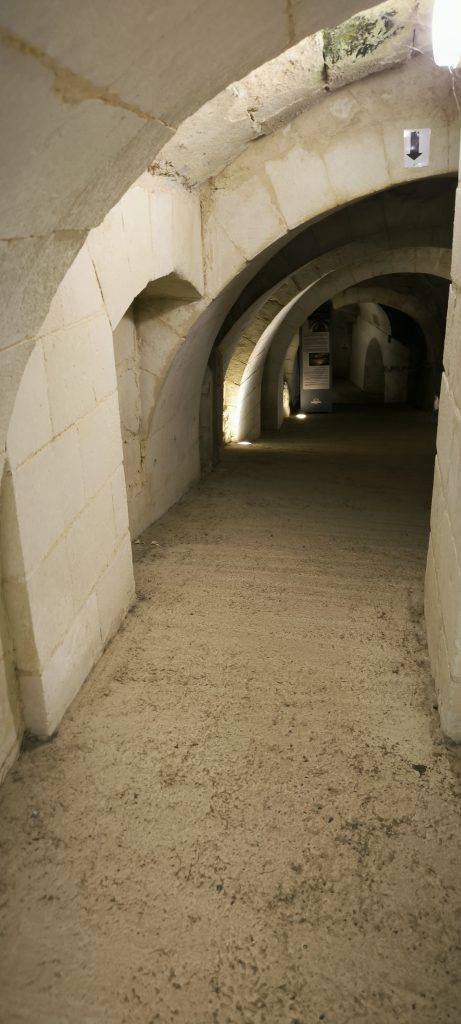 Comme vu plus haut, le château se fortifie au XV ème siècle avec les douves sèches qui sont les plus profondes d’Europe. De ces douves étaient récupérées les pierres de tuffeau. Il y avait surtout cette volonté de se protéger, développant même la psychose de cette possible attaque, outre tout ce système de galeries, ce sont quand même 18 m de profondeur pour les douves.