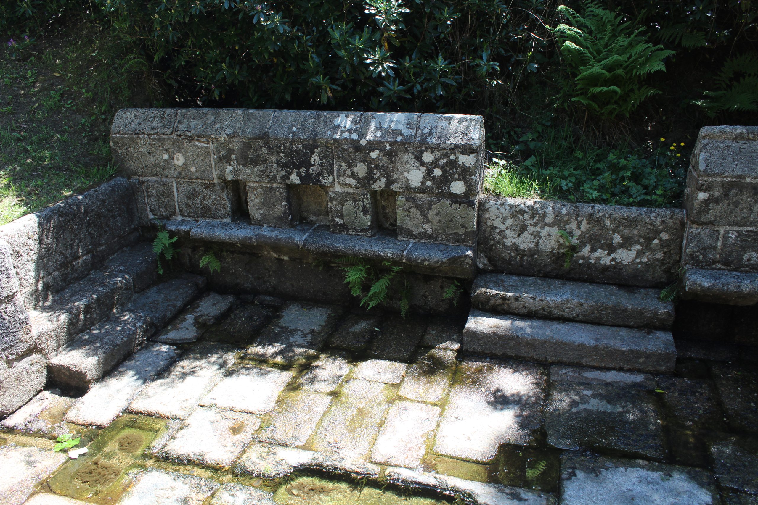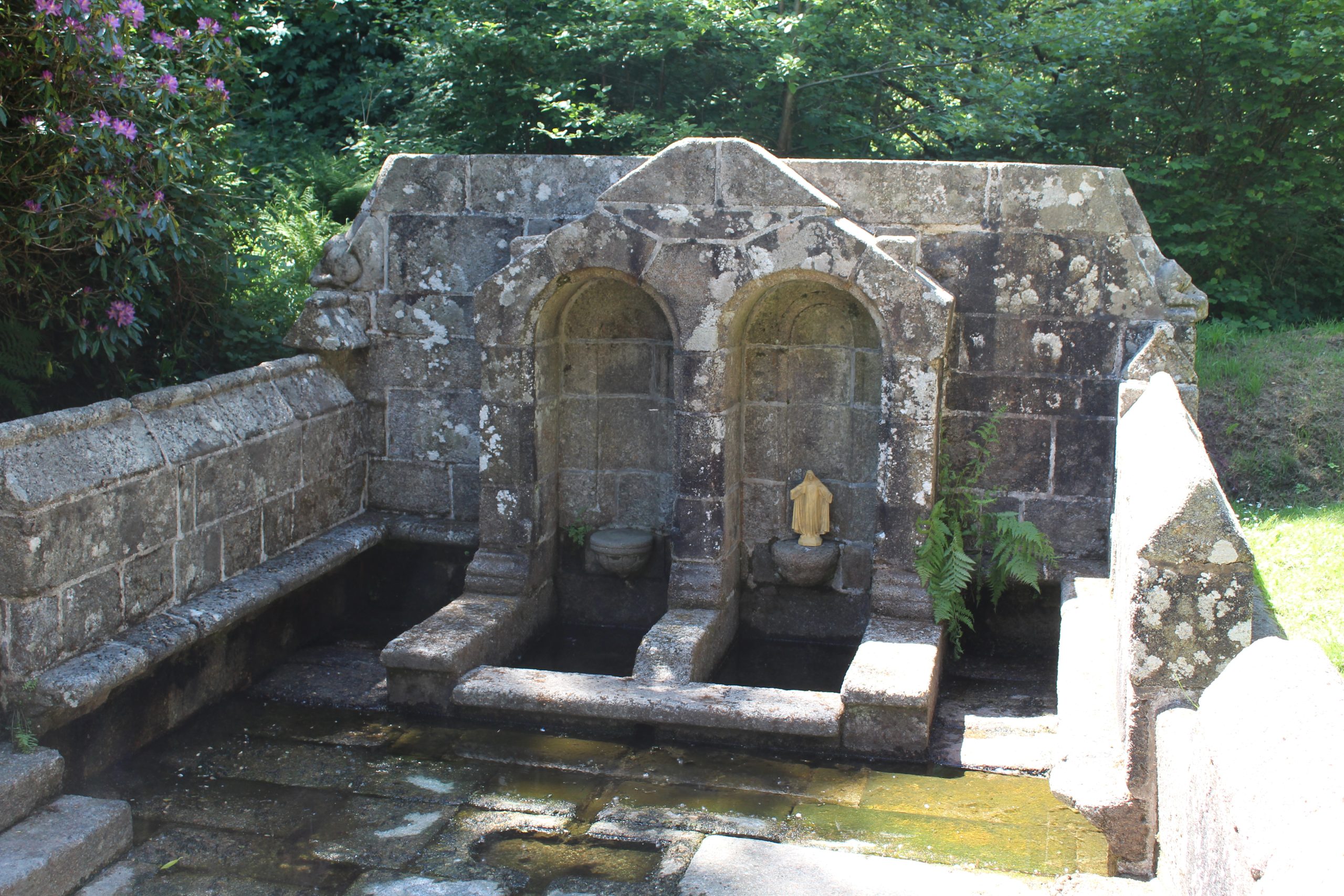 La fontaine des 7 Saints en référence aux 7 Saints fondateurs de la Bretagne : Tugdual, Brieux, Pol Aurélien, Corentin, Paterne, Samson et Malo.