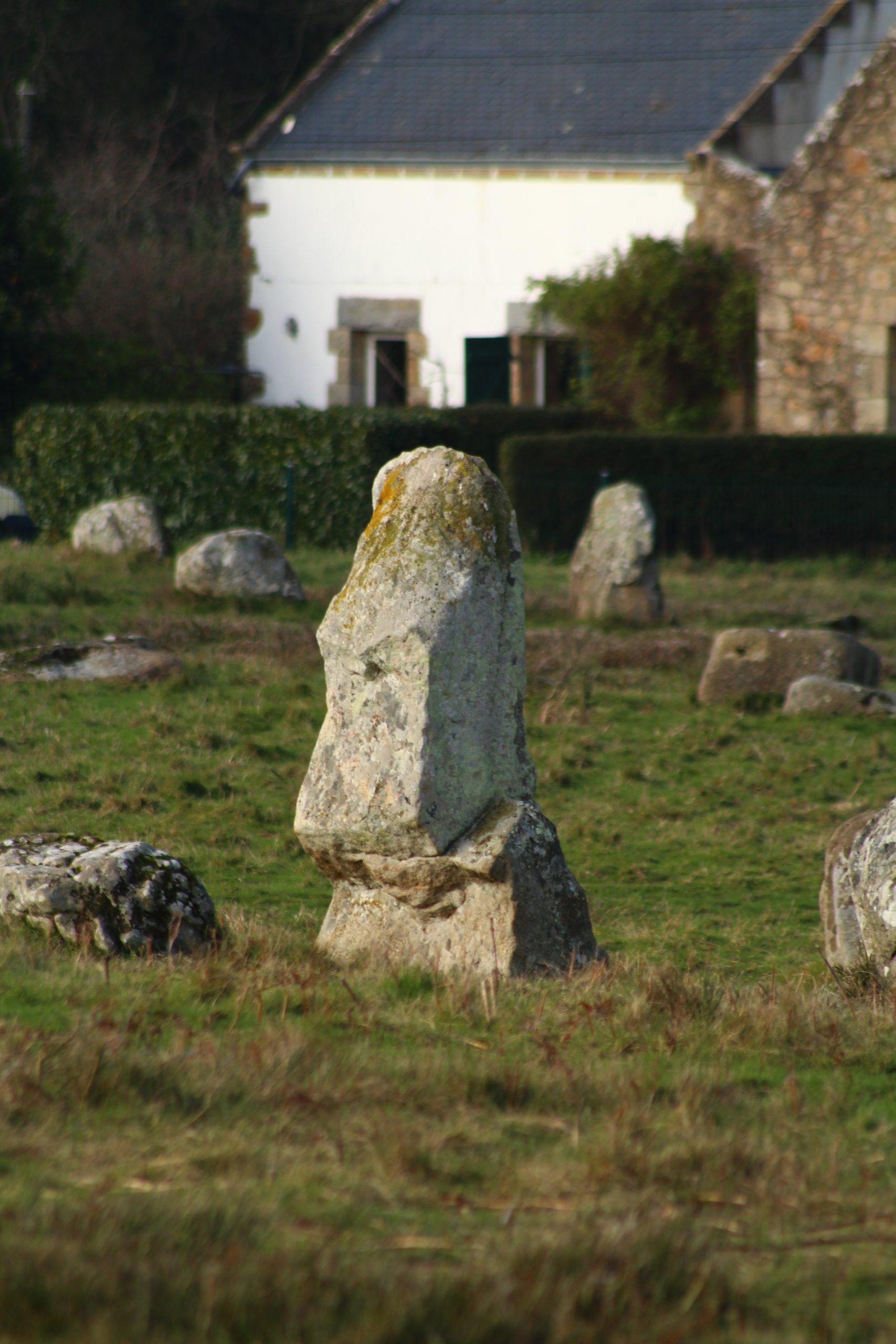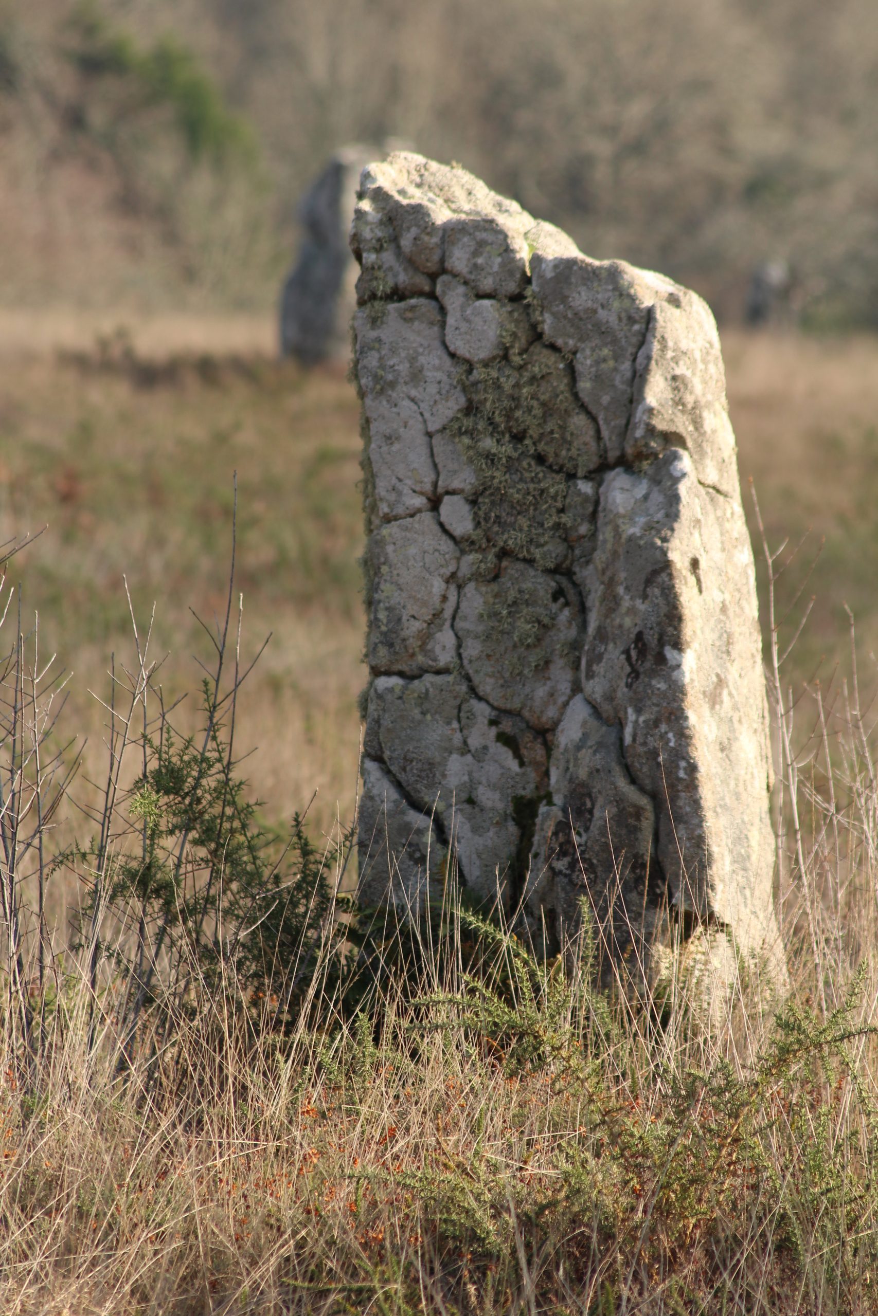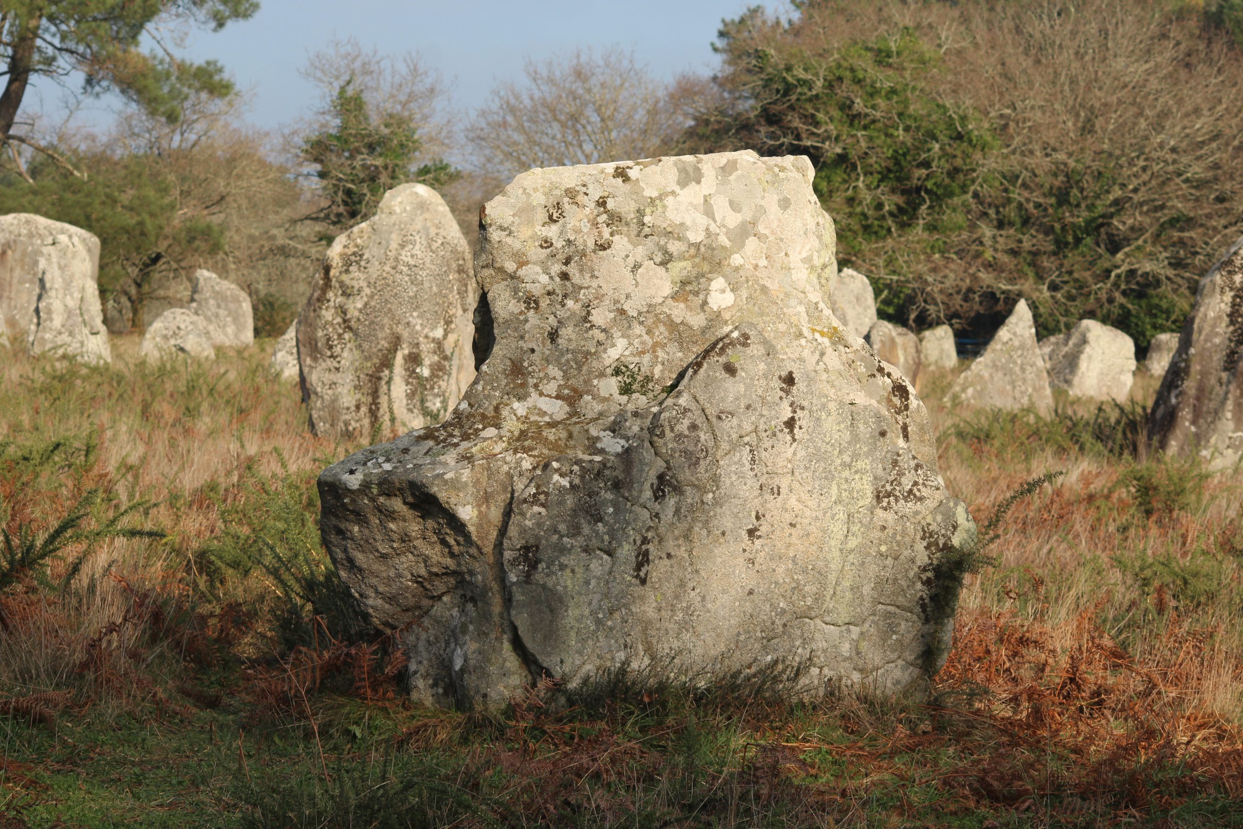 - Menhir : Men=pierre et hir=long en breton. Pierre longue ou pierre dressée. A Carnac le plus grand c’est le Géant du Manio mesure 6,50m.