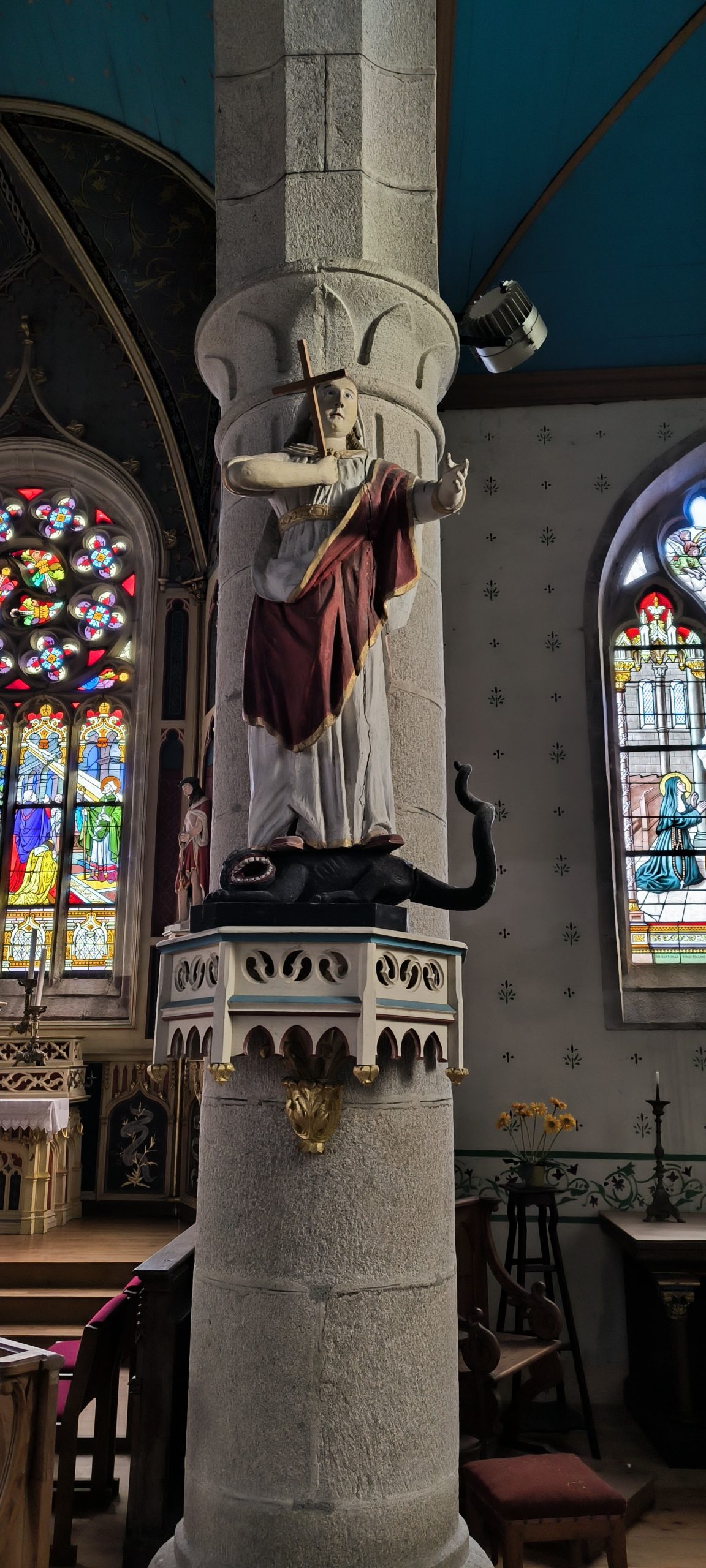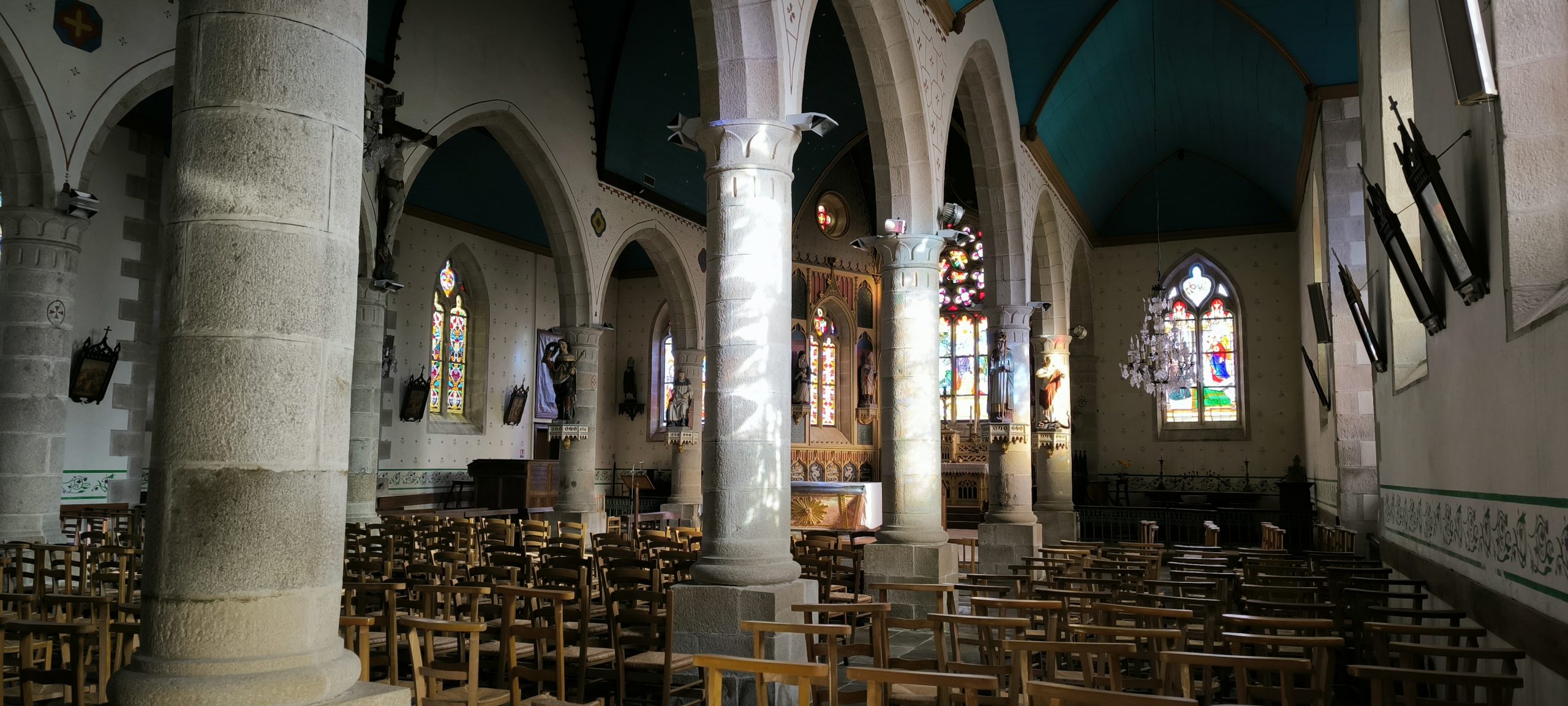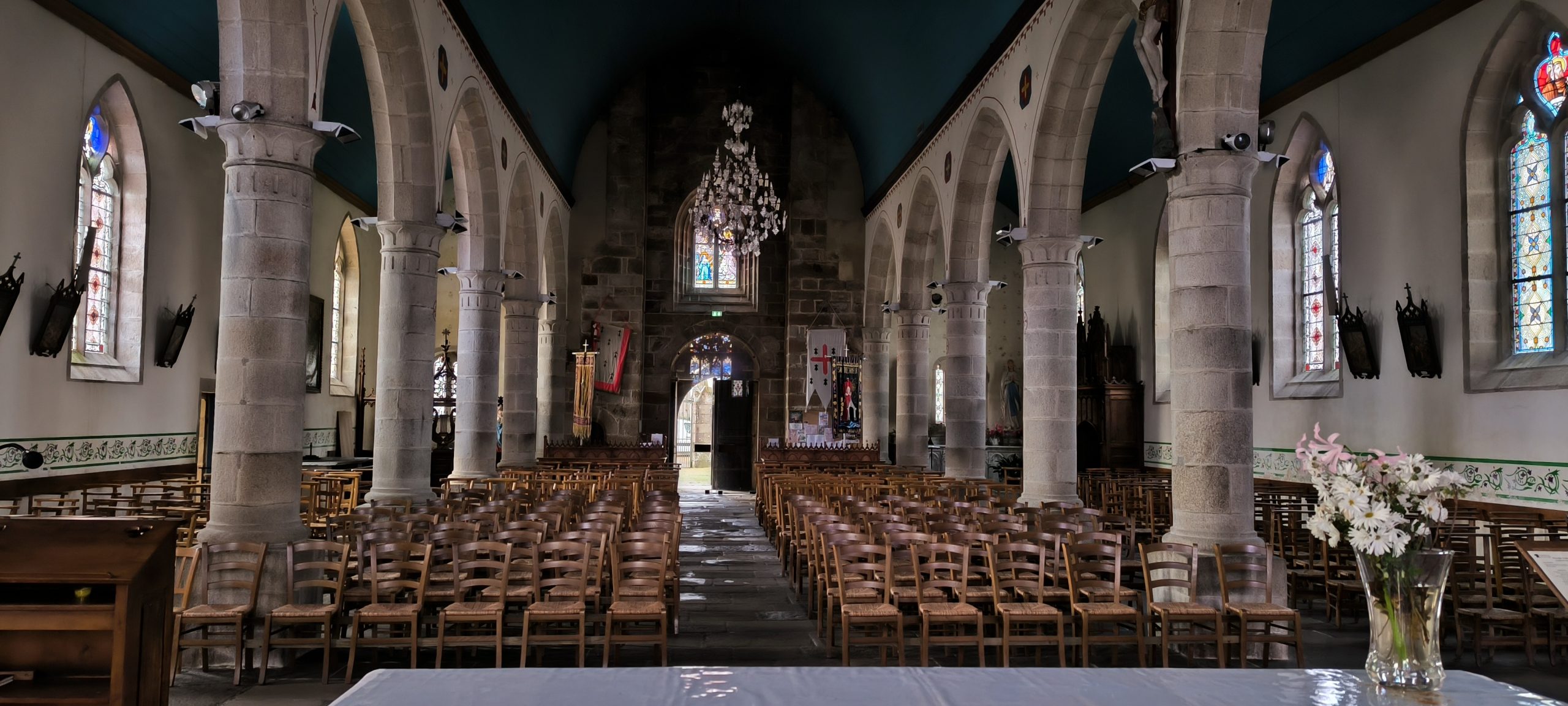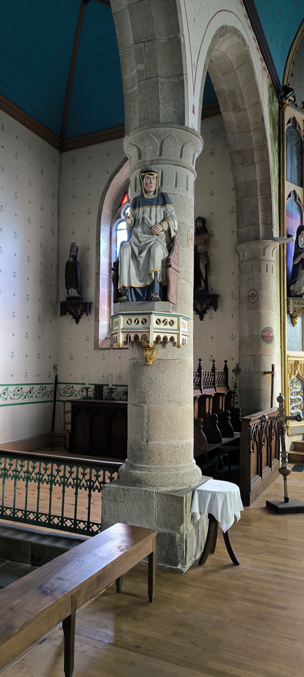 Elle donne un aspect austère au premier abord, mais dès que l’on rentre dedans, c’est vraiment autre chose. J’adore le bleu du plafond et il donne une ambiance douce et apaisante.