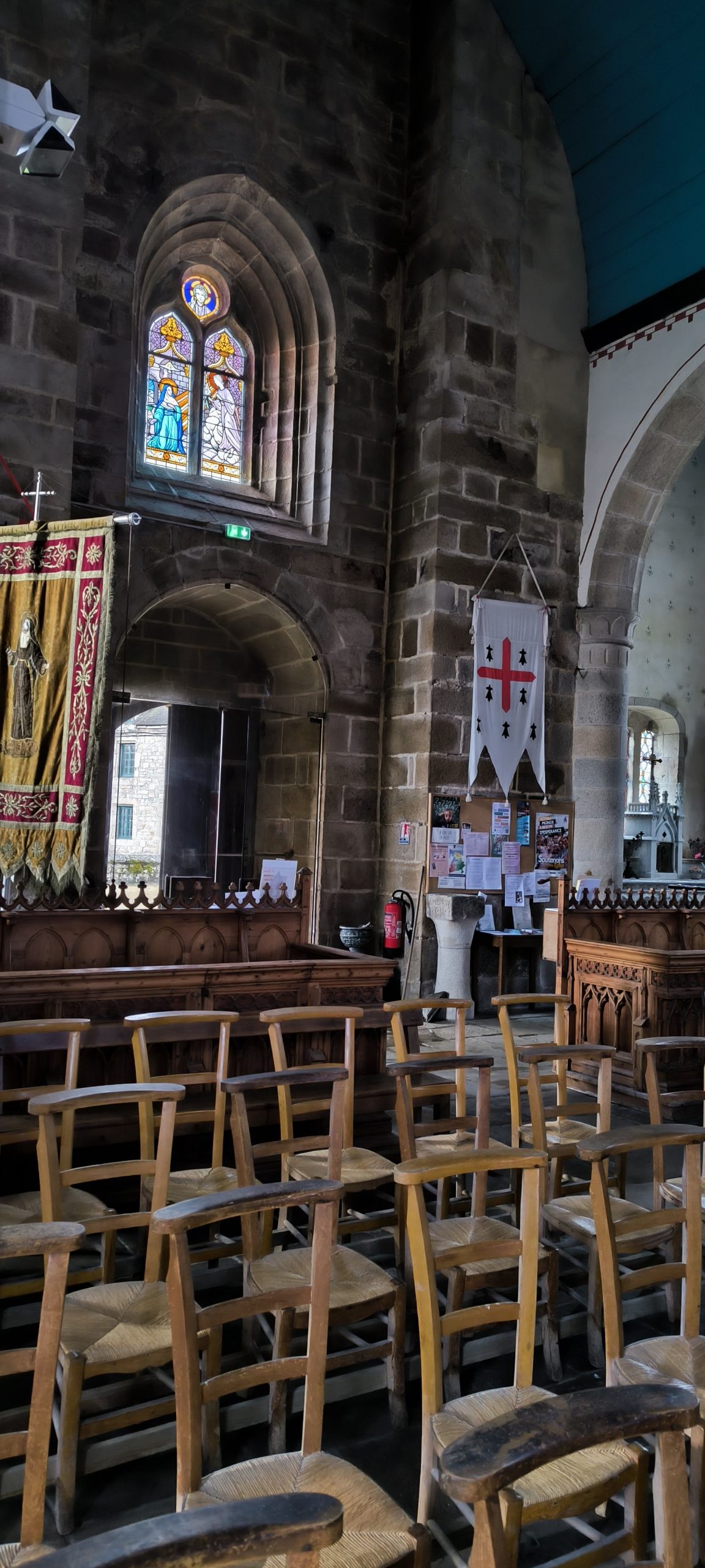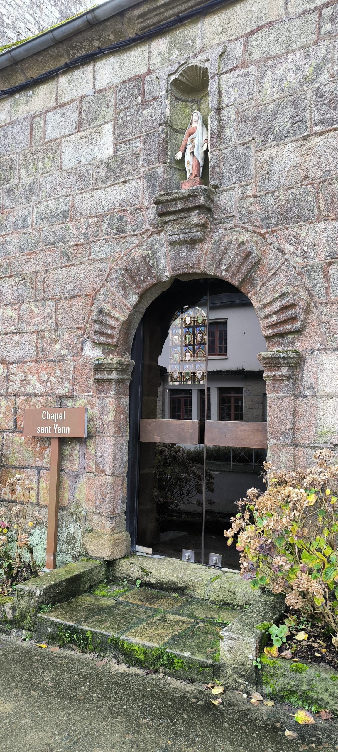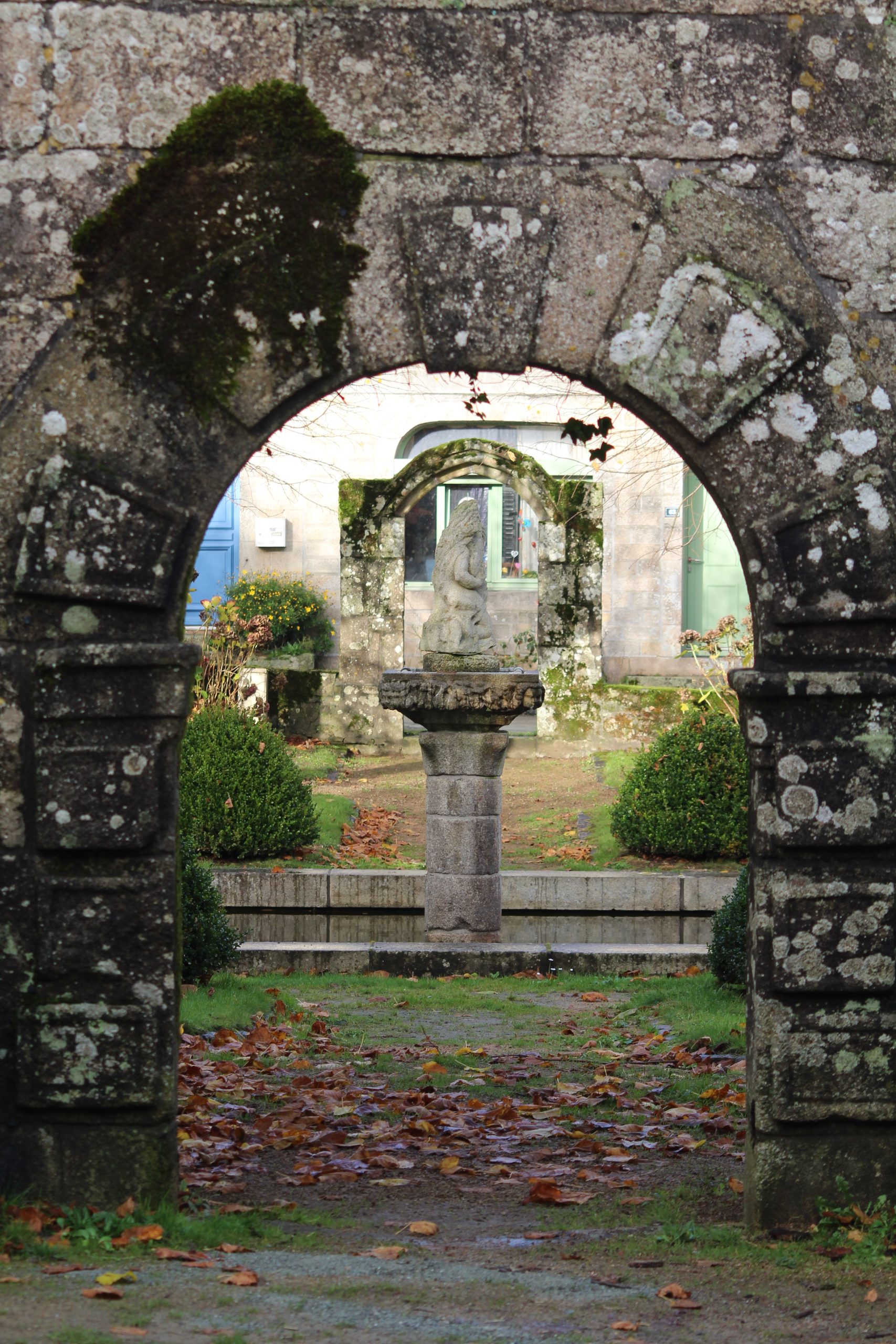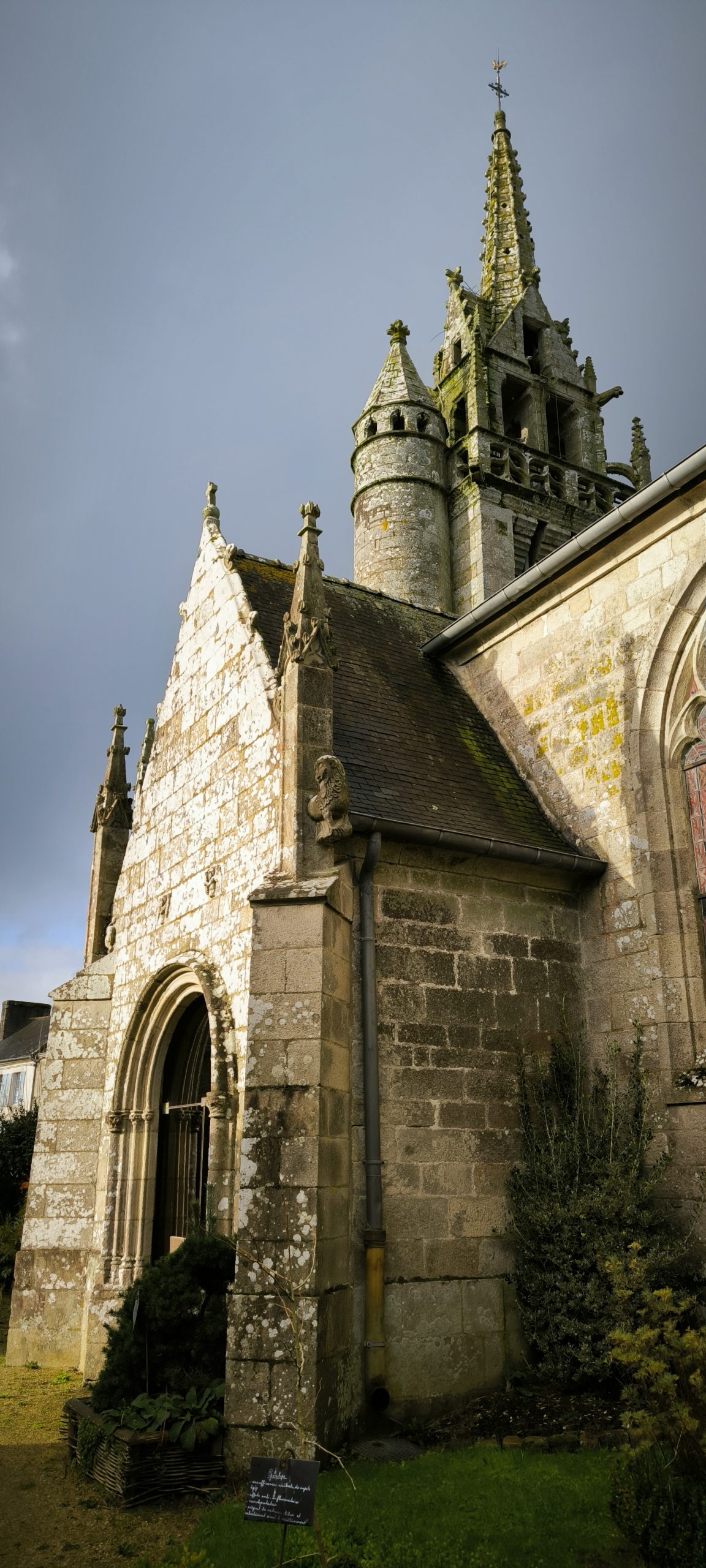 À noter aussi que sur les panneaux il y a le parcours d’inscrit, comme ça on sait où on se trouve. Je trouve ça vraiment bien, ce n’est pas le cas partout. Il y a les petits dépliants Petites cités de caractère (ici pour Guerlesquin) que je prends facilement dès que je les trouve, vous avez le plan du bourg, les monuments à voir et l’histoire qui va avec. Mais là un dimanche après midi hors saison… aucune chance d’en trouver.