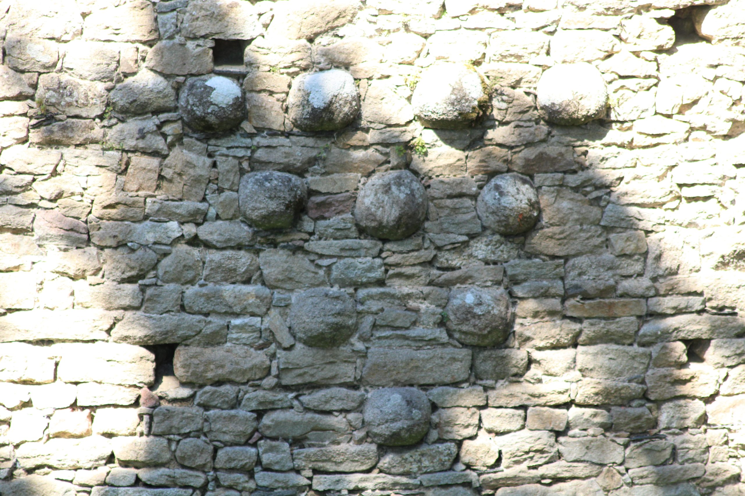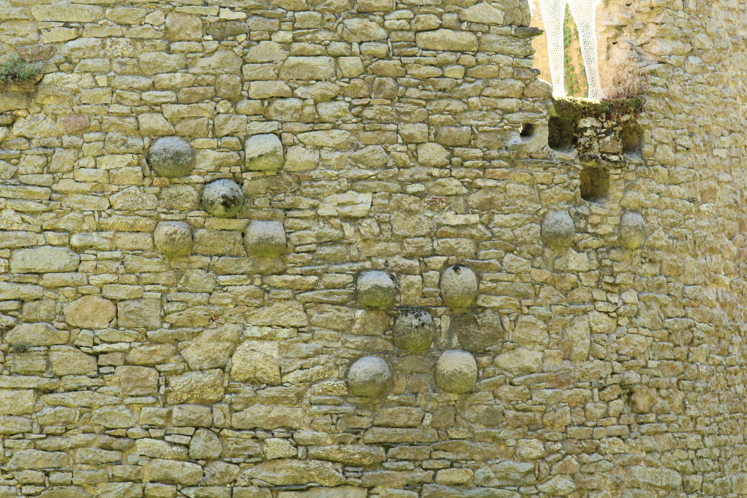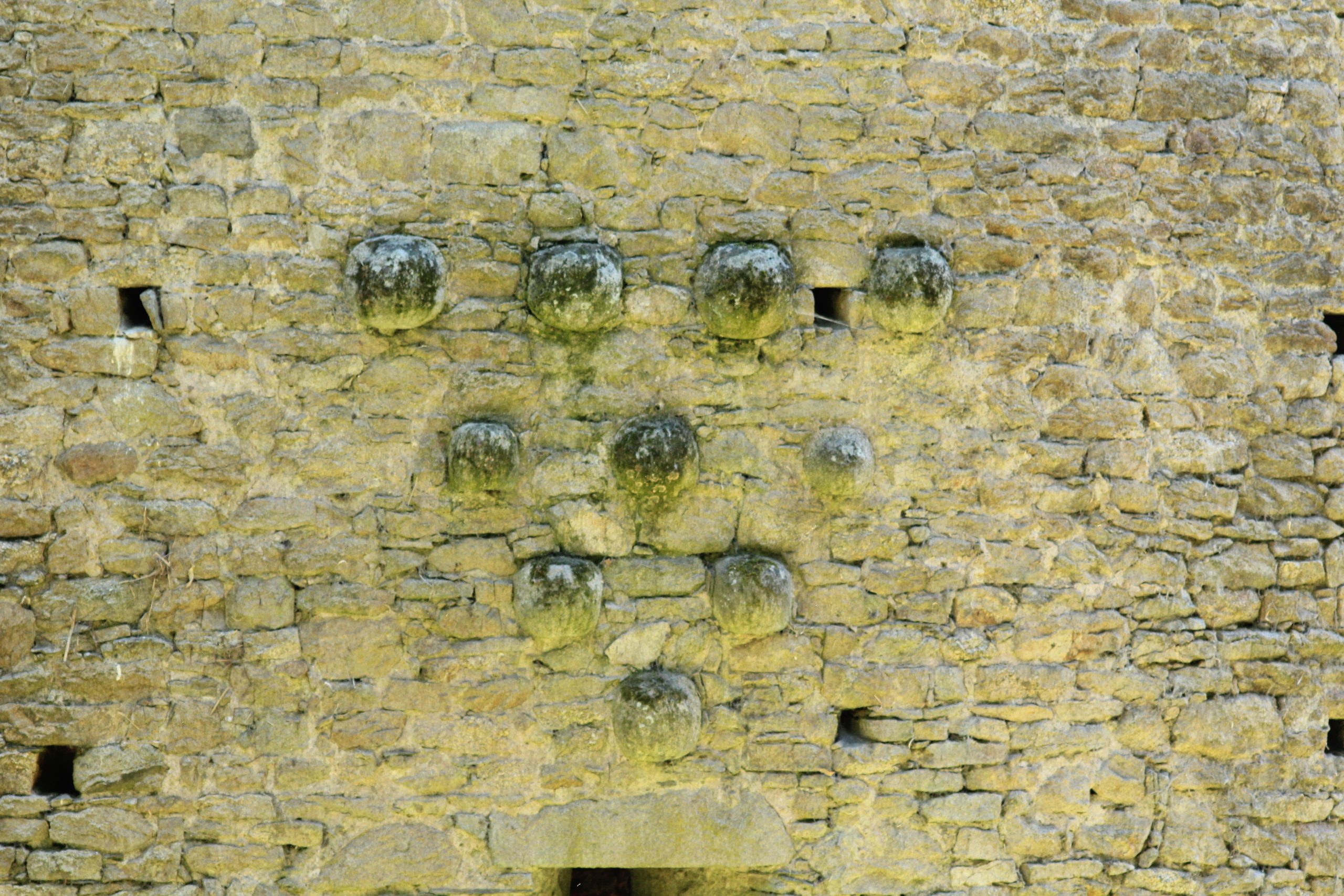 On ne sait pas trop à qui on doit les besants sur les murs des tours. Ça représente les blasons des Familles de Rieux et de Rochefort.