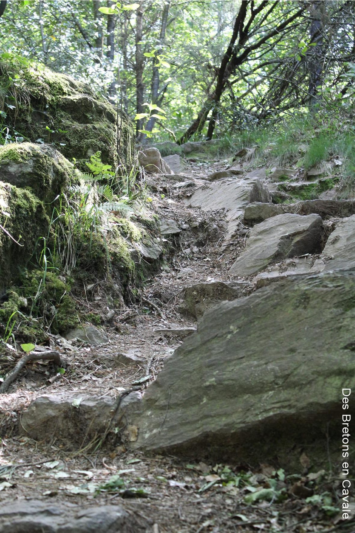 Après avoir marché tranquilou sans trop se rendre compte du temps qui passait, tellement on était bien ! On découvre la fontaine, au creux de ces pierres, l’eau y est claire. Le lieu est vraiment très paisible.