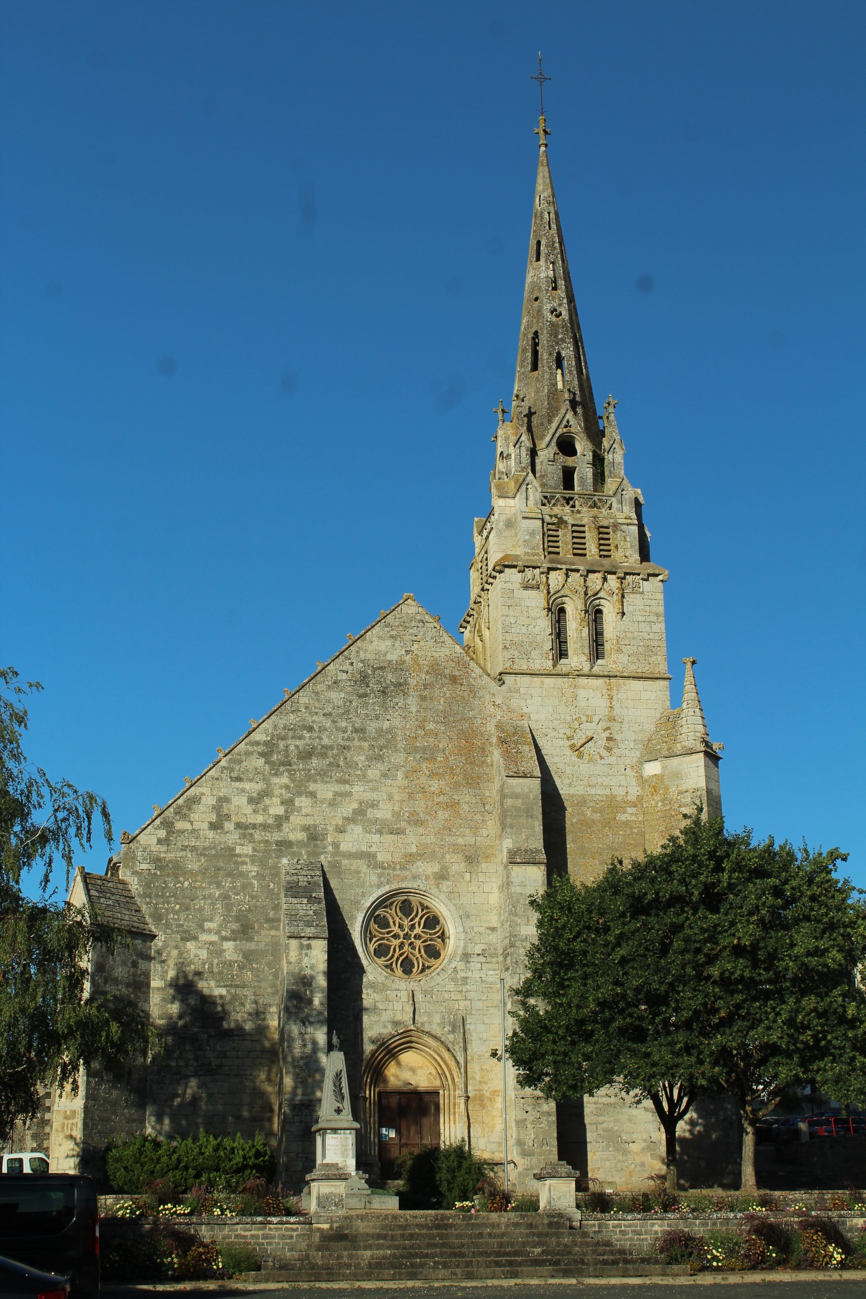Nous avons commencé par suivre la rivière, c’est bien charmant et assez bucolique. La promenade était agréable surtout qu’il faisait encore chaud en cette fin d’après midi. Puis nous avons continué pour rejoindre les anciennes dépendances du château puis l’Orangerie. Le château, il n’y en a plus, juste une place le symbolisant. Nous avons continués vers le centre bourg jusqu’à l’église puis retour vers l’aire de stationnement.