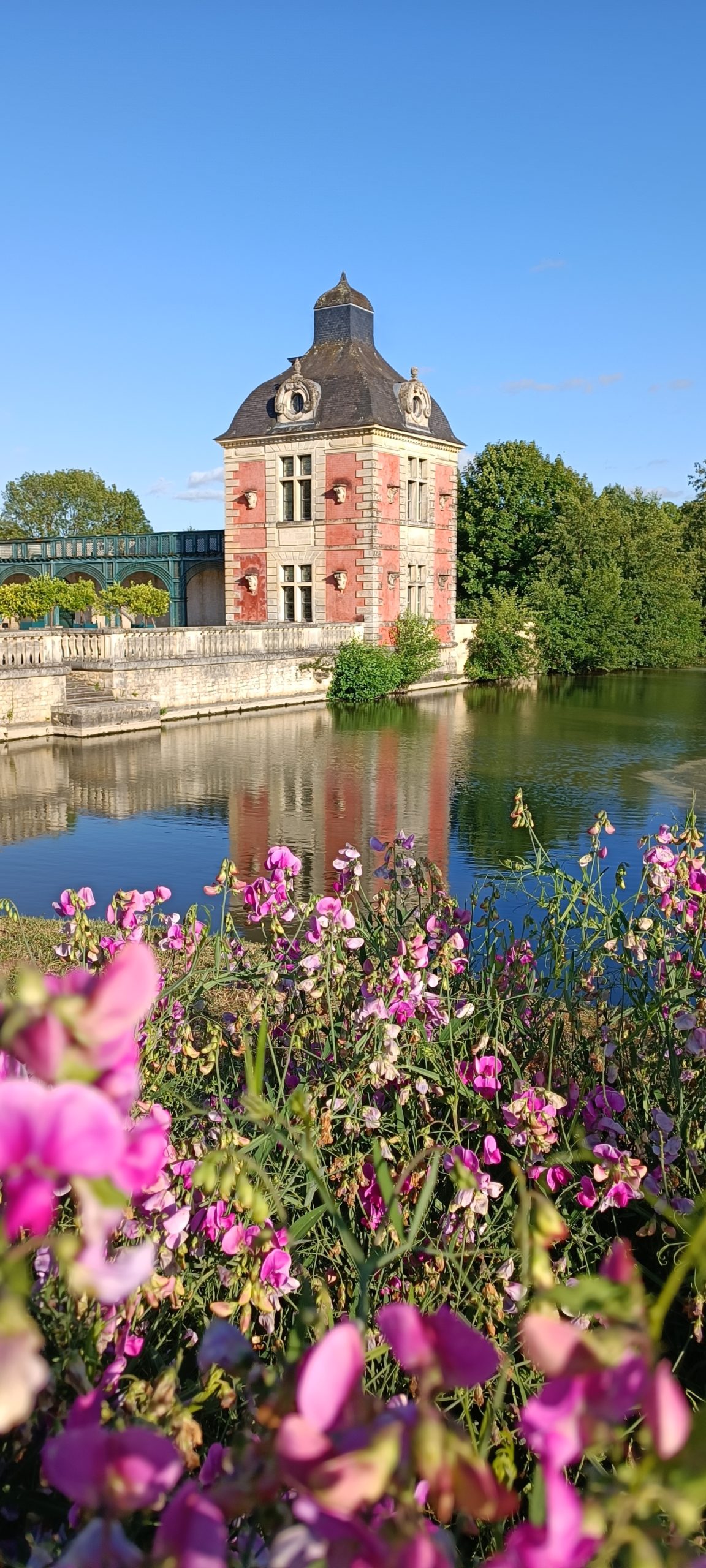 Lorsque l’on suit le Chemin des jardins secrets, on arrive à l’Orangerie. Elle date de 1640. Œuvre du maître maçon de Richelieu, Nicolas Tillon, il y a aussi 2 pavillons. A l’étage de l’Orangerie, c’était une salle de réception où le beau-frère de Napoléon y a même donné en bal en 1805 avant son départ pour Naples. La salle au rez-de-chaussée abrite les arbustes qui craignent le gel l’hiver ainsi que les citronniers mais aussi les orangers d’où le nom donné au bâtiment. Tout un projet a été mis en place pour lui redonner la splendeur du 17ème siècle avec les jardins à la française et le canal recreusé.