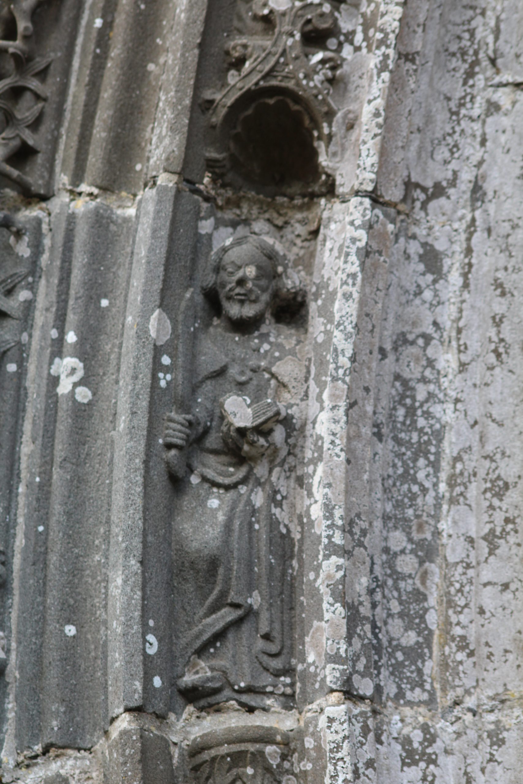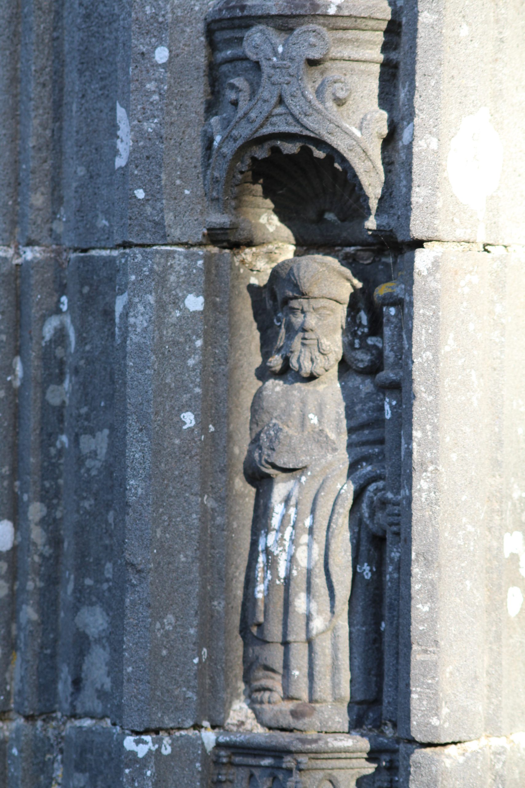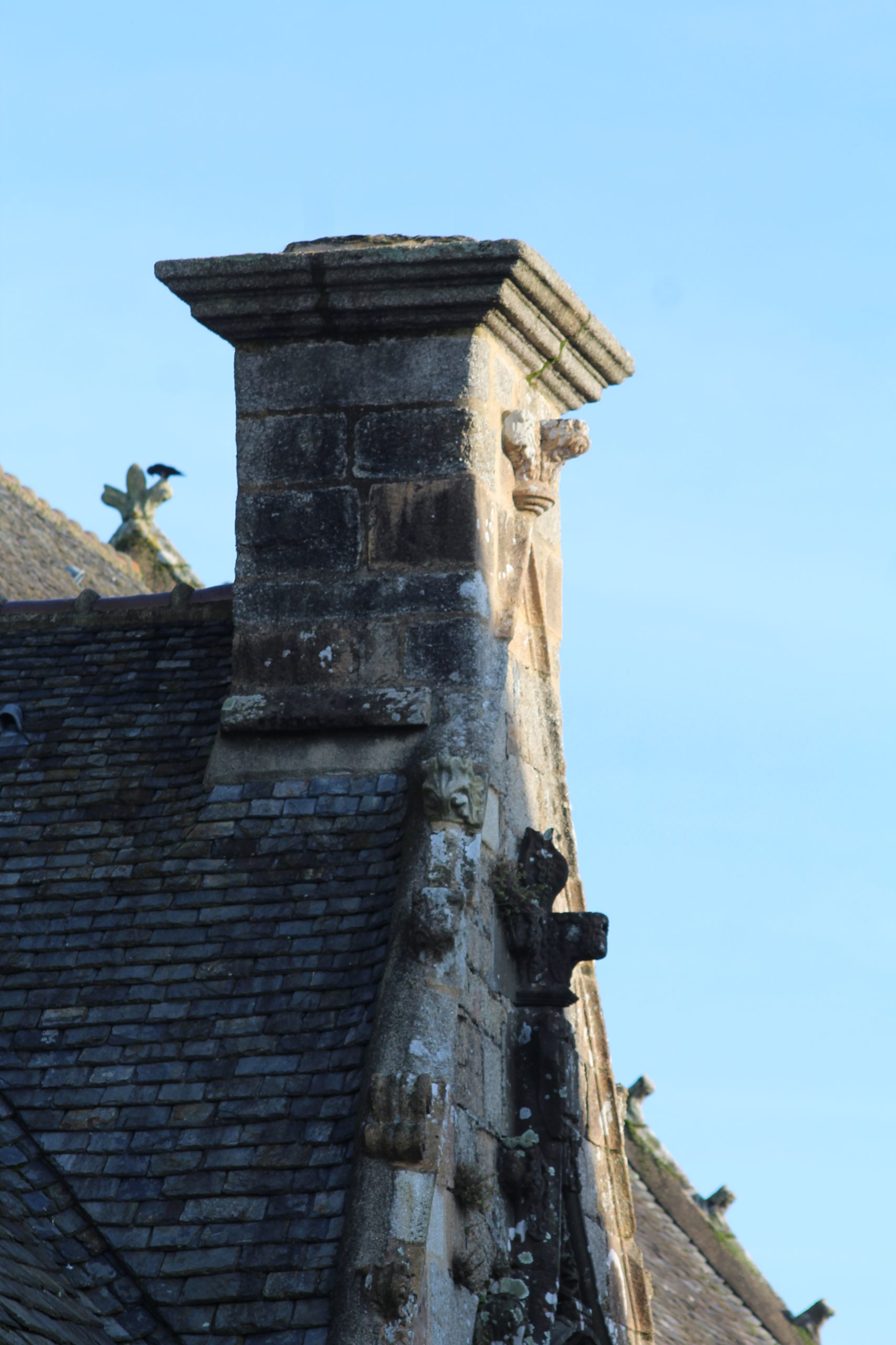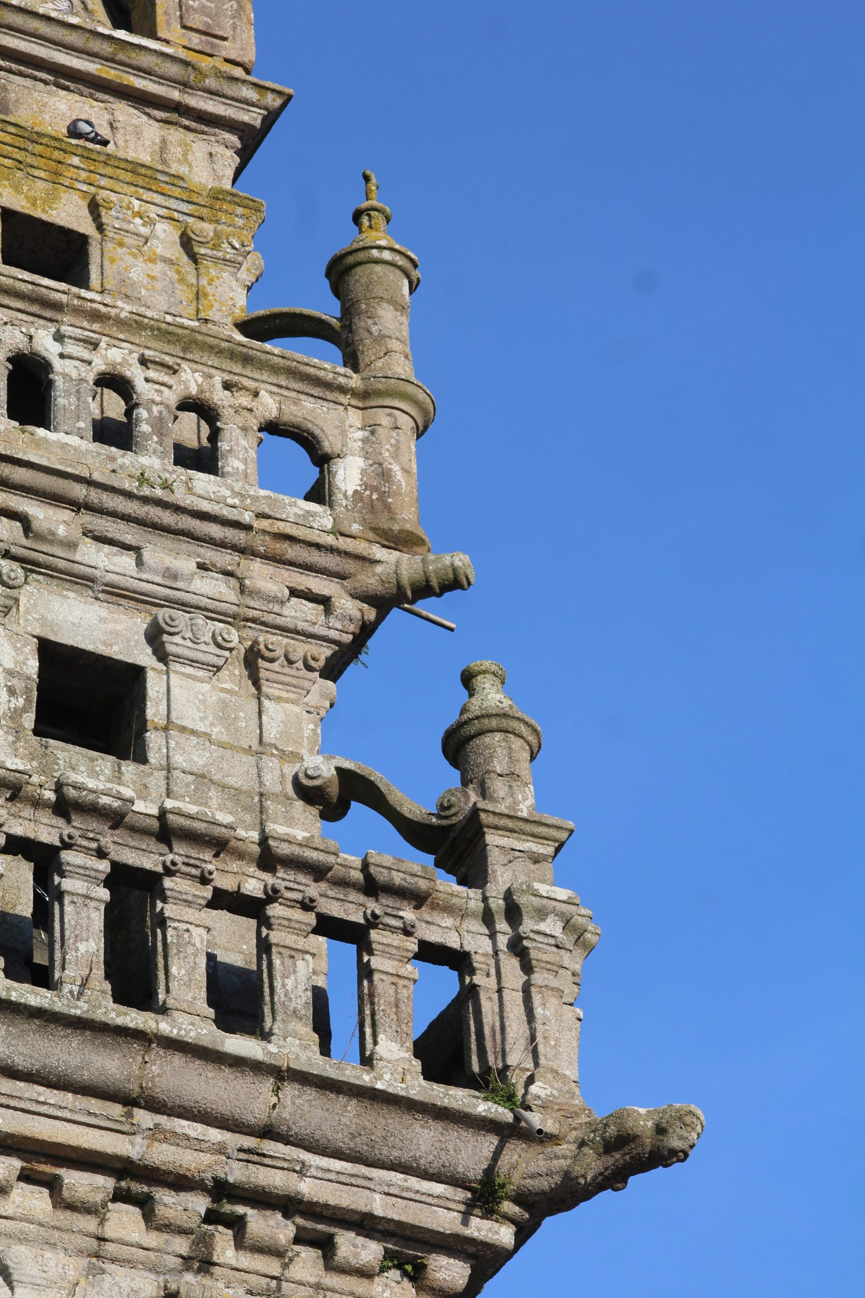 Par contre même s’il manque un imposant calvaire et un arc de triomphe, l’église avec son clocher « Léonard » (1589-90) à double galerie et une double chambre de cloches et sa porte méridionale sont tout simplement magnifiques et riches de décorations. Bon, je vais me répéter une fois de plus mais je reste scotché devant tant de travail pour une époque qui n’avait rien des outils que l’on a aujourd’hui. Les détails sont là malgré les siècles qui passent. Je suis toujours aussi fascinée devant ces pierres ♥
