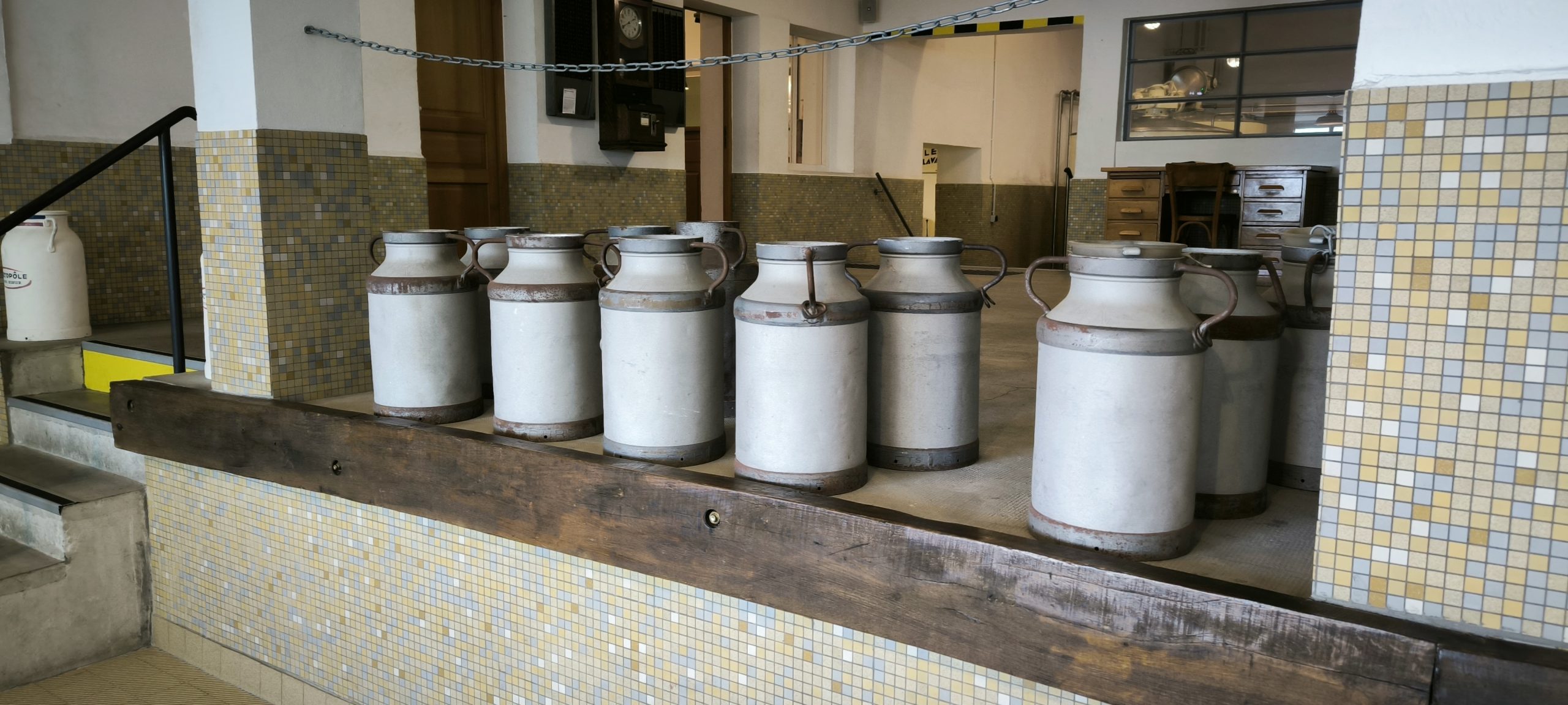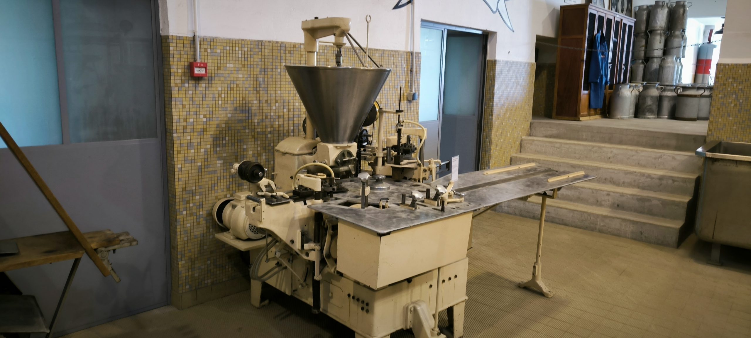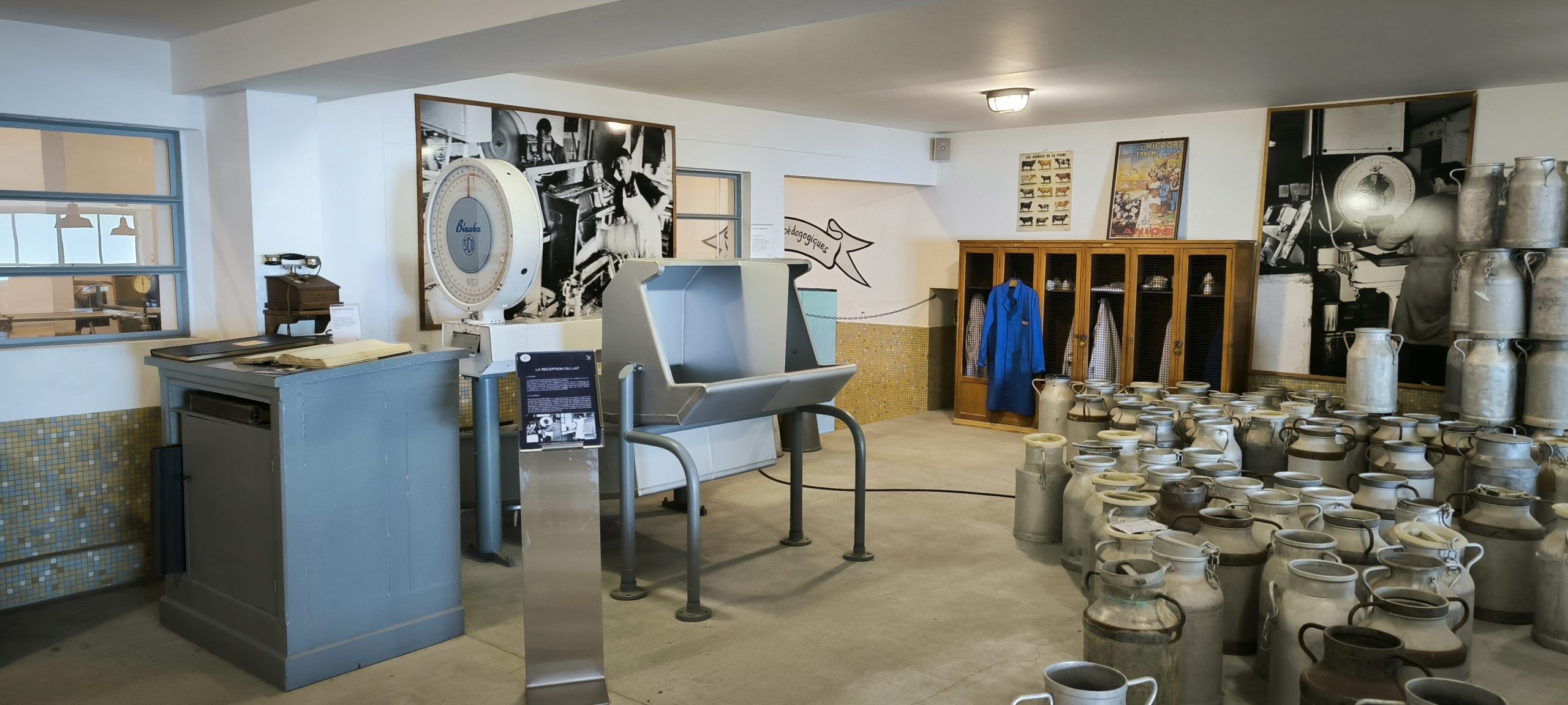 On se trouve sur l’ancien site de la laiterie fromagerie. La visite débute d’ailleurs par l’entrée de l’ancienne laiterie des années 50..