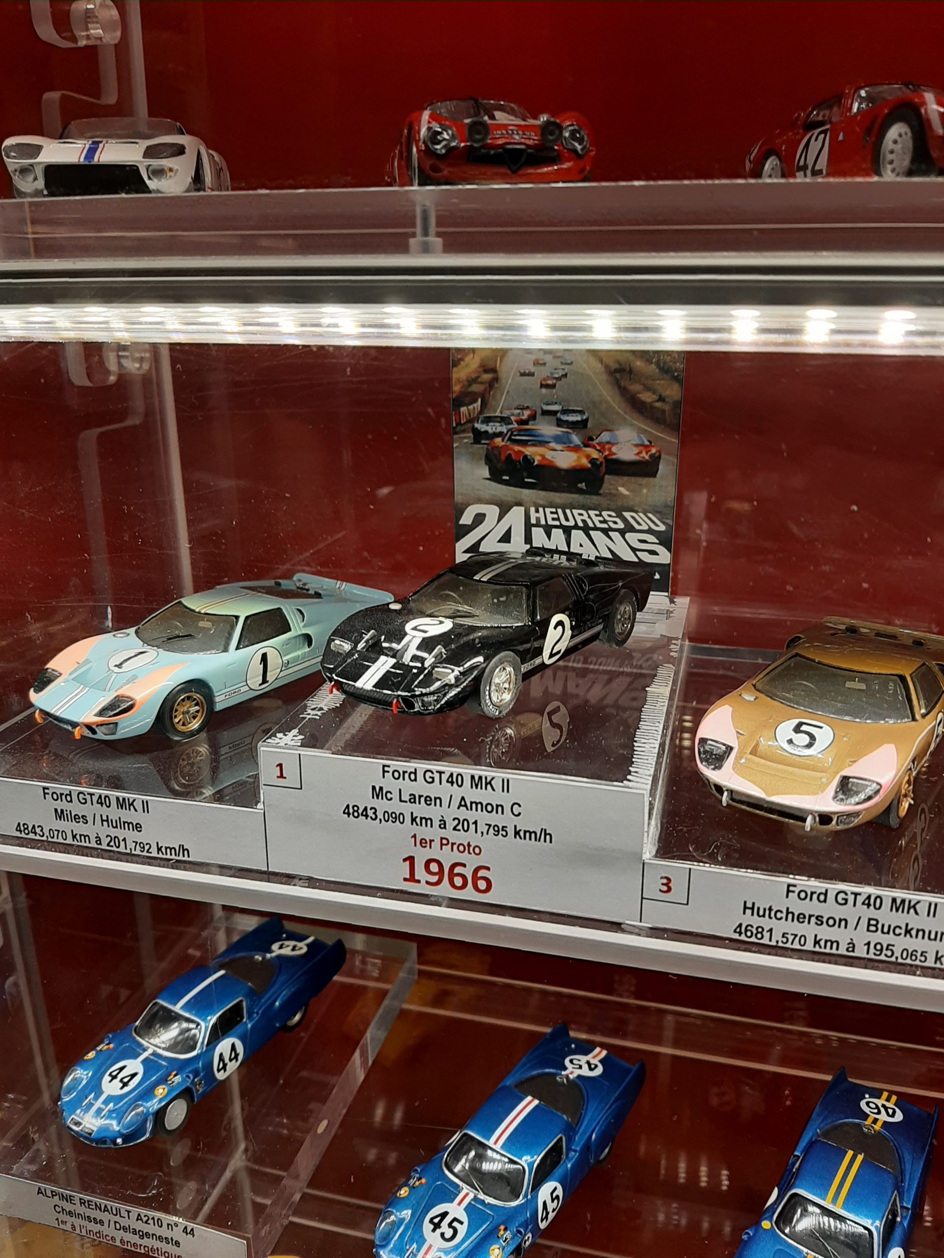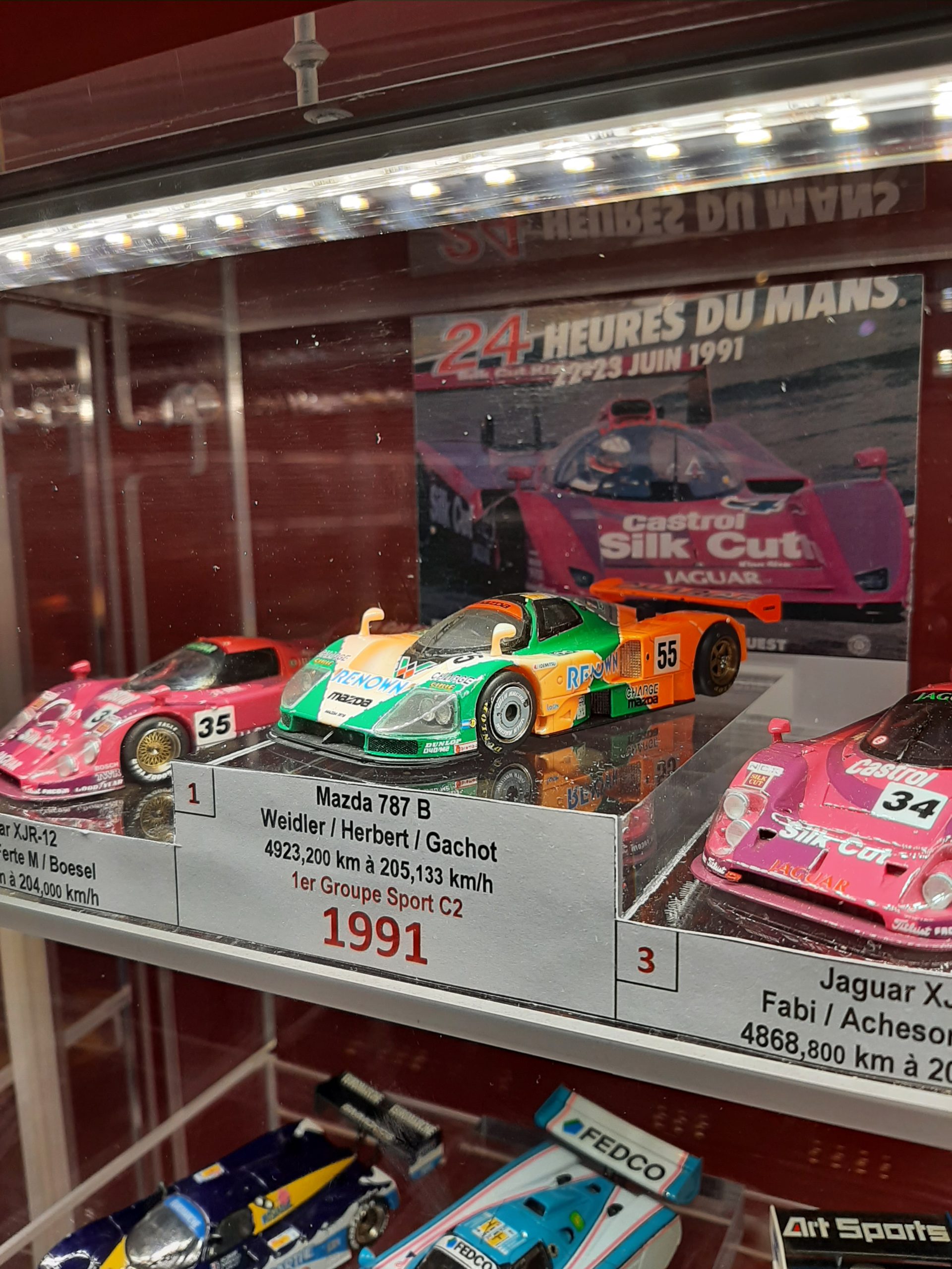 Il y a aussi toute un exposition de modèles réduits dans une grande pièces. Tous les podiums de chaque années depuis 1923 jusqu’à aujourd’hui avec en dessous les autres voitures de la courses classées par ordre d’arrivée.