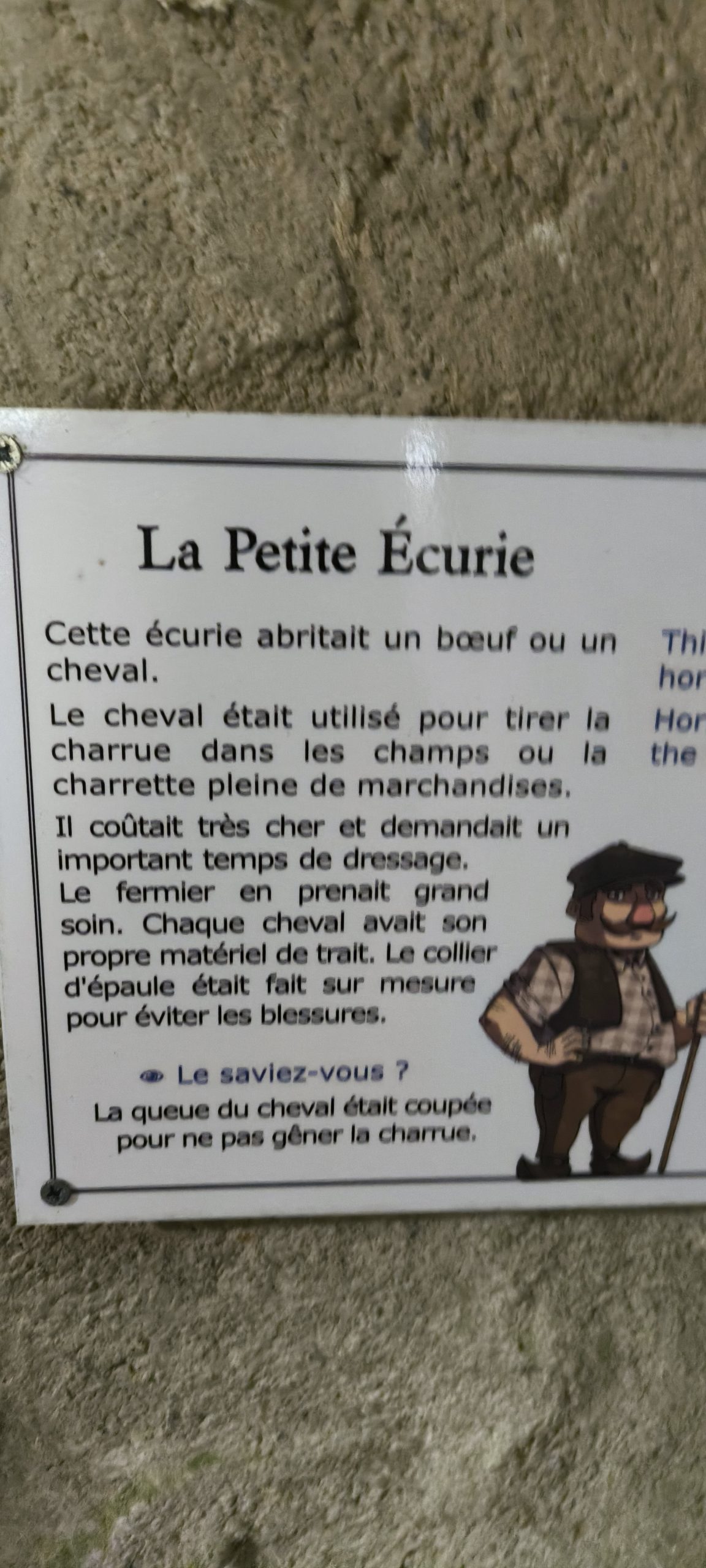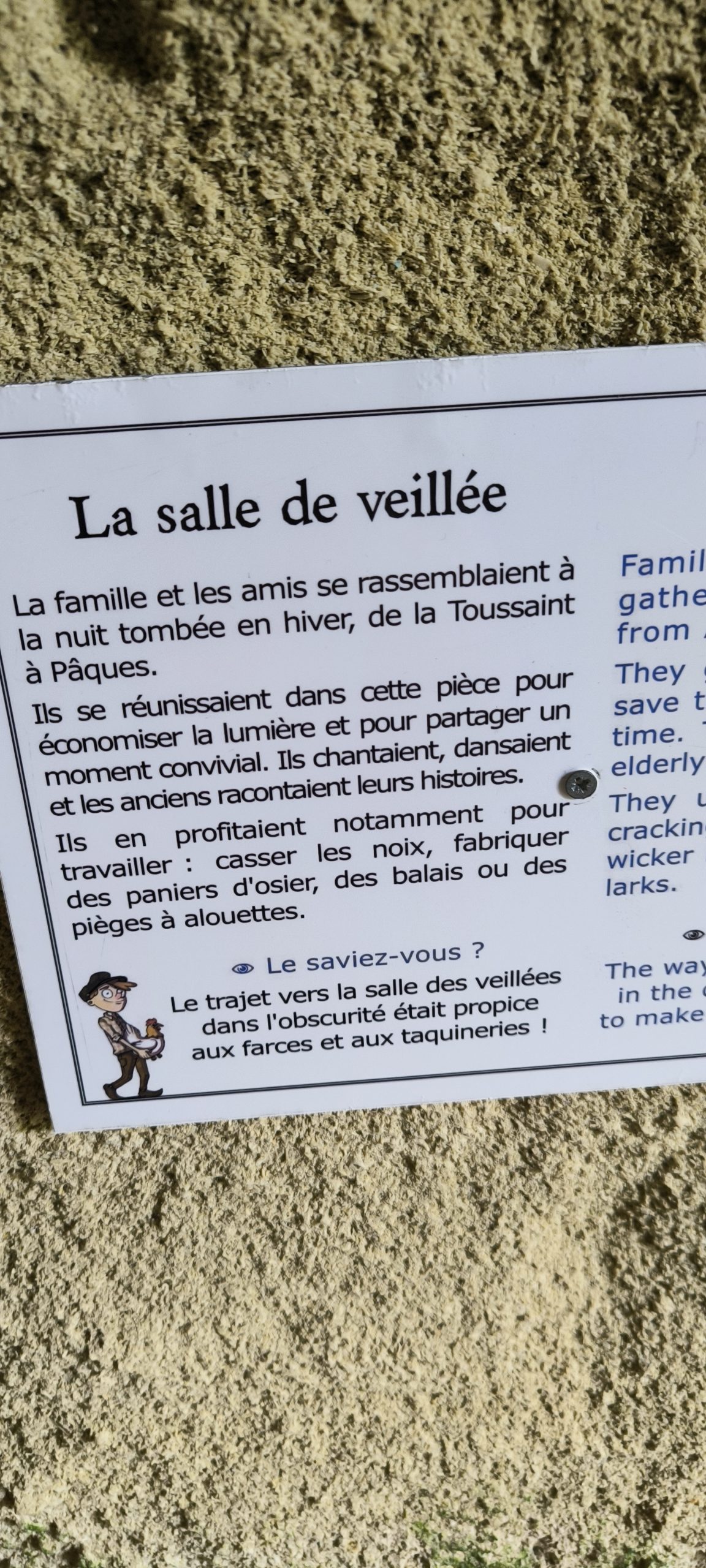Les petits panneaux qui expliquent les différentes salles et la vie de l’époque.