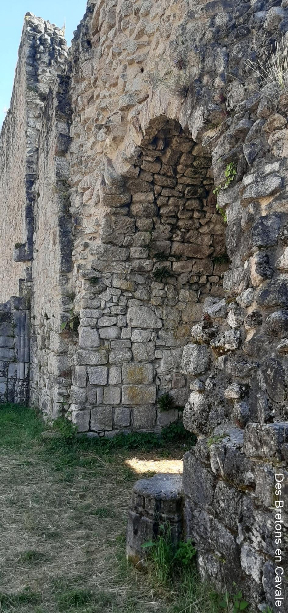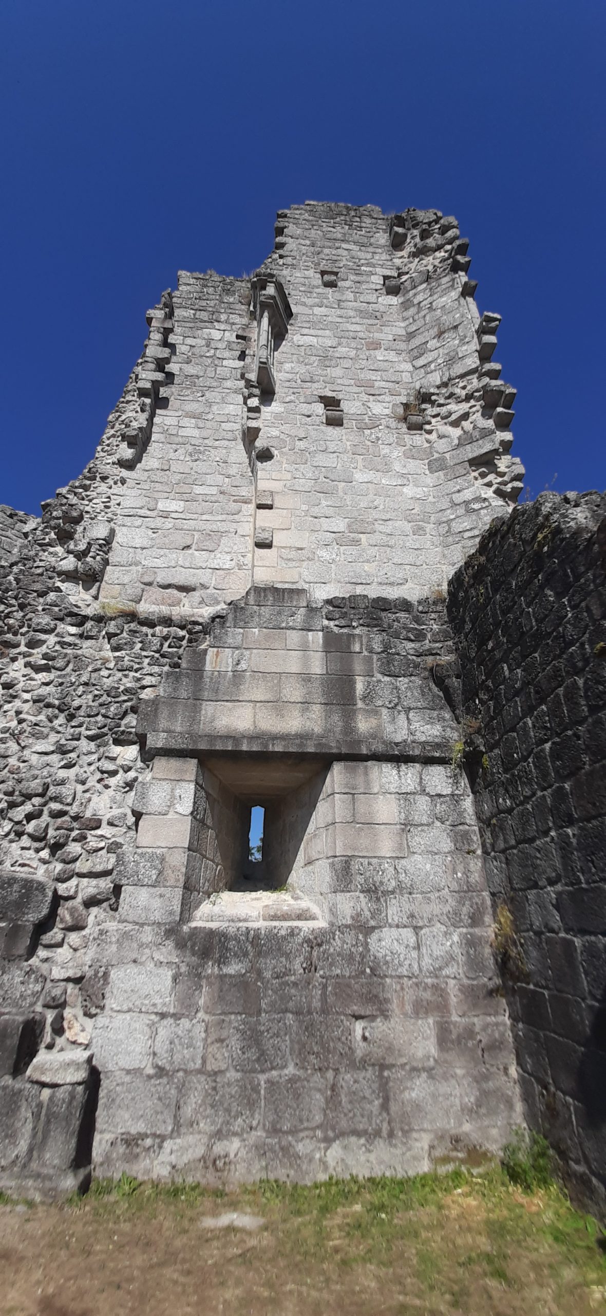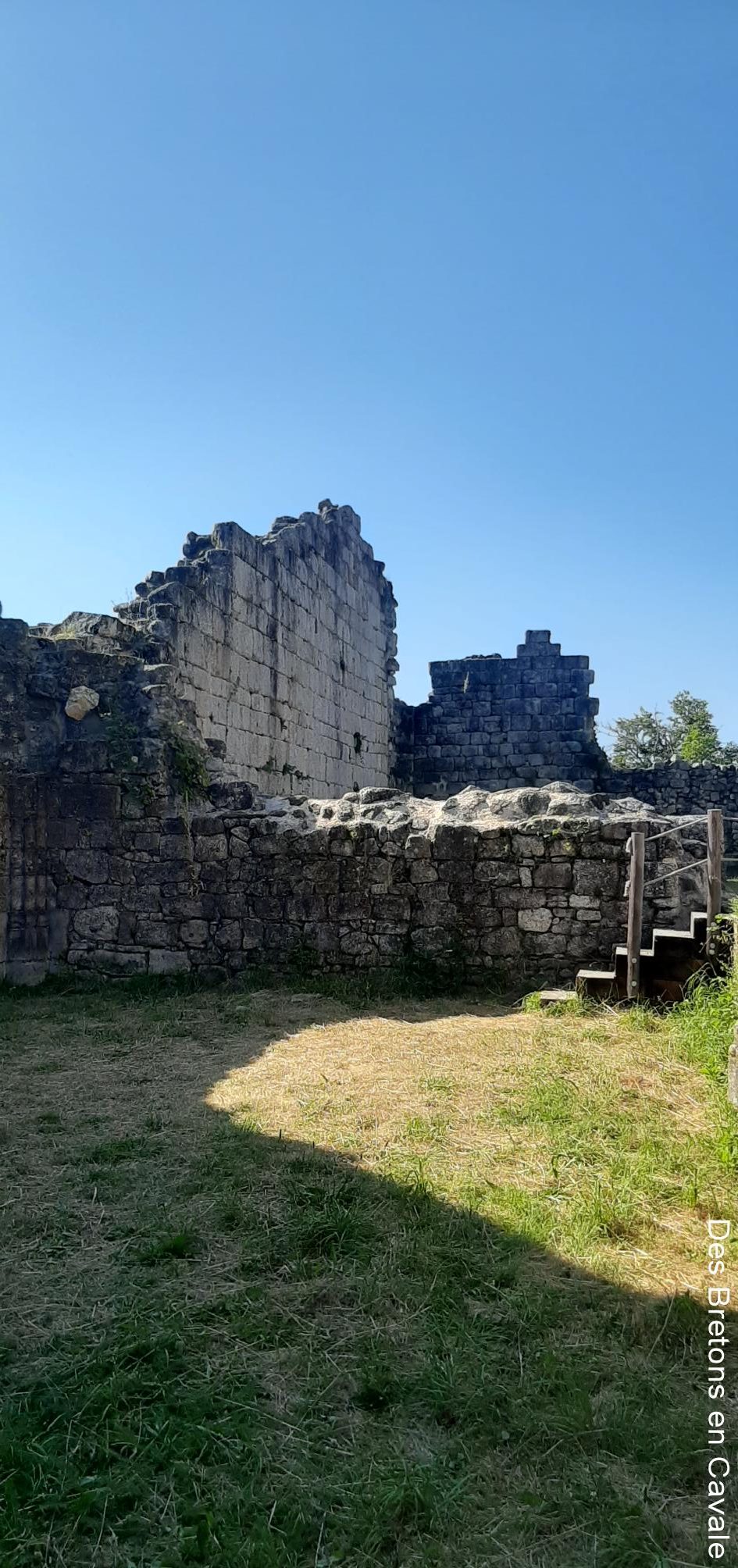 Perché sur son rocher, il surplombe la vallée de la Soudeillette à 572 m d’altitude. La vue est magnifique et c’est là que l’on comprend mieux ce lieu choisi, c’était idéal pour surveiller les environs et surtout pour se faire voir !! A l’extrémité de cet éperon rocheux, ce château féodal s’est construit tout en longueur (Un peu comme Turenne, je trouve!) . Il ne reste pas grand chose, on devine la chapelle, la tour-logis avec son grand pan en pierre mais aussi le logis seigneurial où l’on passe de pièce en pièce.