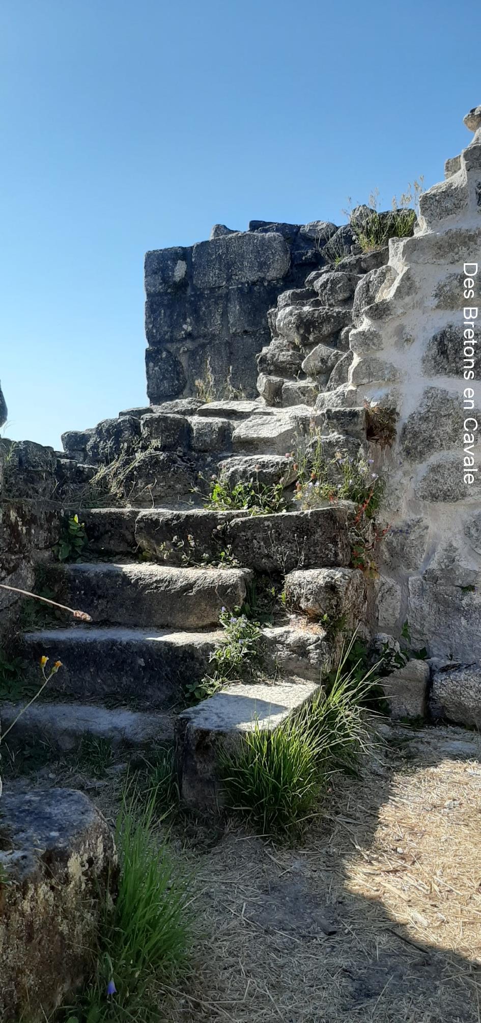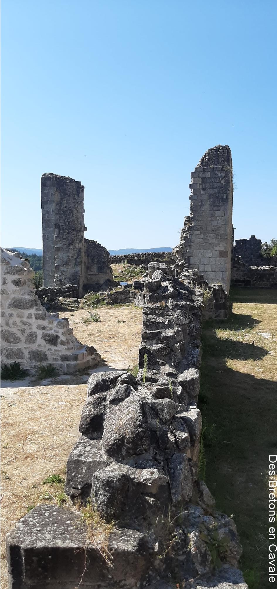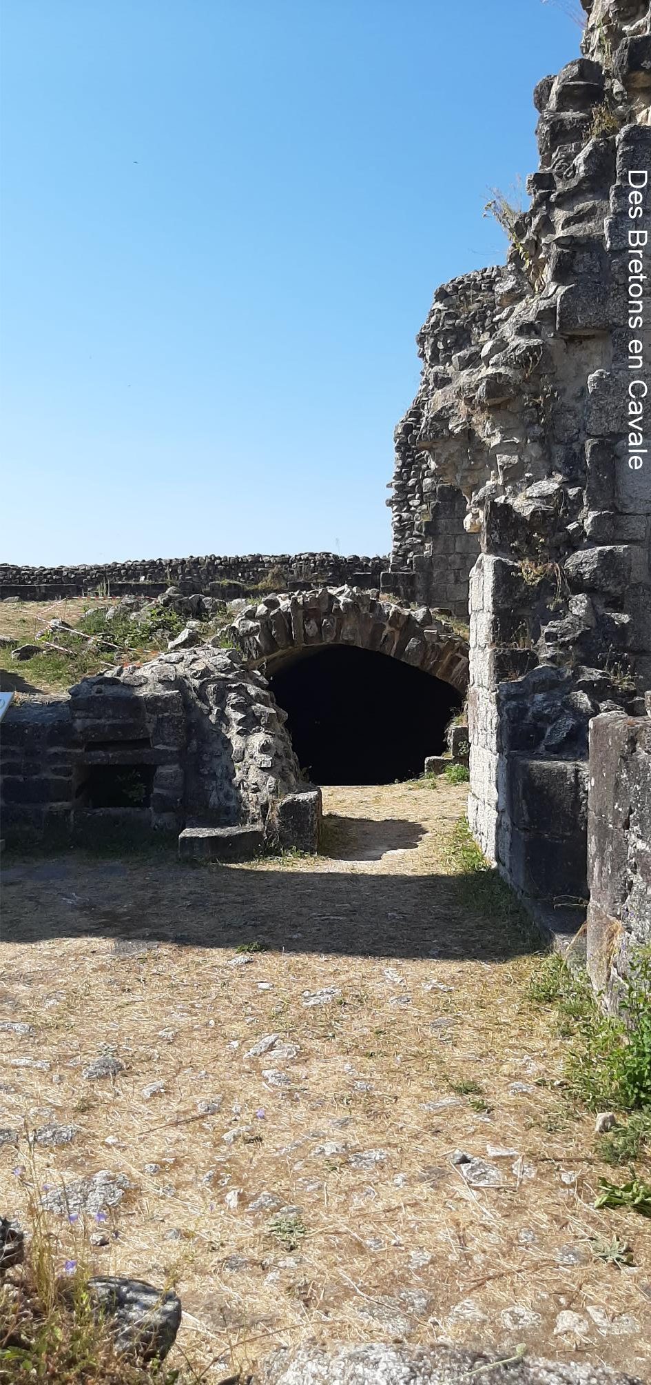 Perché sur son rocher, il surplombe la vallée de la Soudeillette à 572 m d’altitude. La vue est magnifique et c’est là que l’on comprend mieux ce lieu choisi, c’était idéal pour surveiller les environs et surtout pour se faire voir !! A l’extrémité de cet éperon rocheux, ce château féodal s’est construit tout en longueur (Un peu comme Turenne, je trouve!) . Il ne reste pas grand chose, on devine la chapelle, la tour-logis avec son grand pan en pierre mais aussi le logis seigneurial où l’on passe de pièce en pièce.