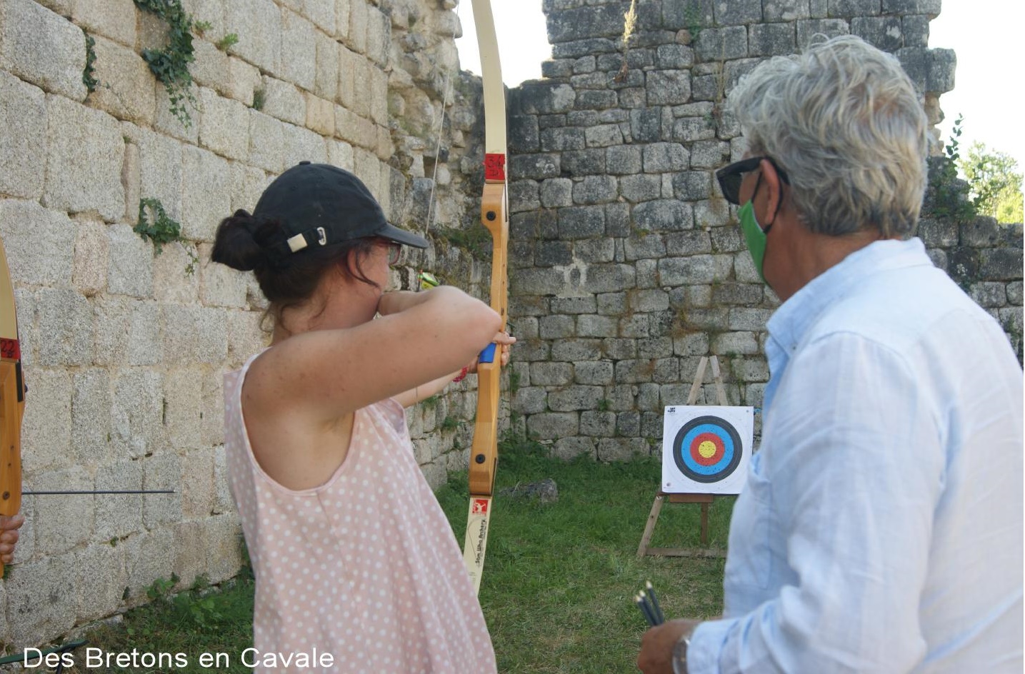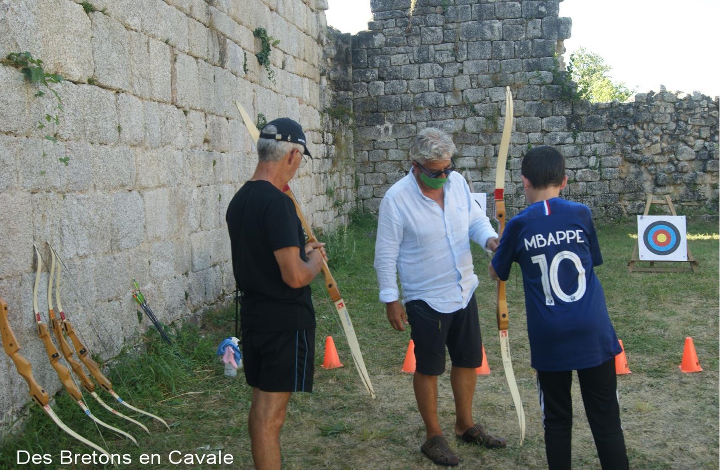 Nous sommes arrivés au bourg de Moustier Ventadour et pris la direction du château…. une petite route avec au bout le parking du château. Pas un chat, je pensais trouver plus de monde ! J’avais trouvé des petits dépliants pour faire de la pub et le jour où nous allions était prévu des séances de tir à l’arc ! Chouette programme 🙂
