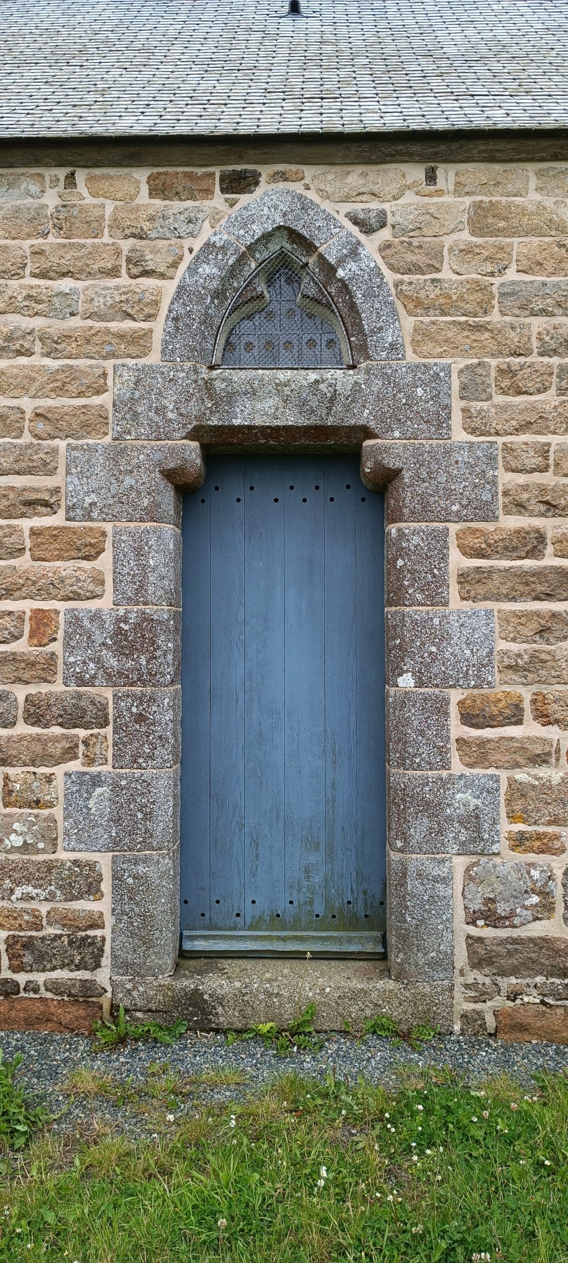 Le porche date du XVIIè siècle où se trouvent les armes de l’abbé Alexendre de Cossé-Brissac. Pour rentrer dans la chapelle, il faut se baisser, car la porte ne doit pas dépasser 1,60 m. Ça obligeait ainsi à saluer le Saint en rentrant.