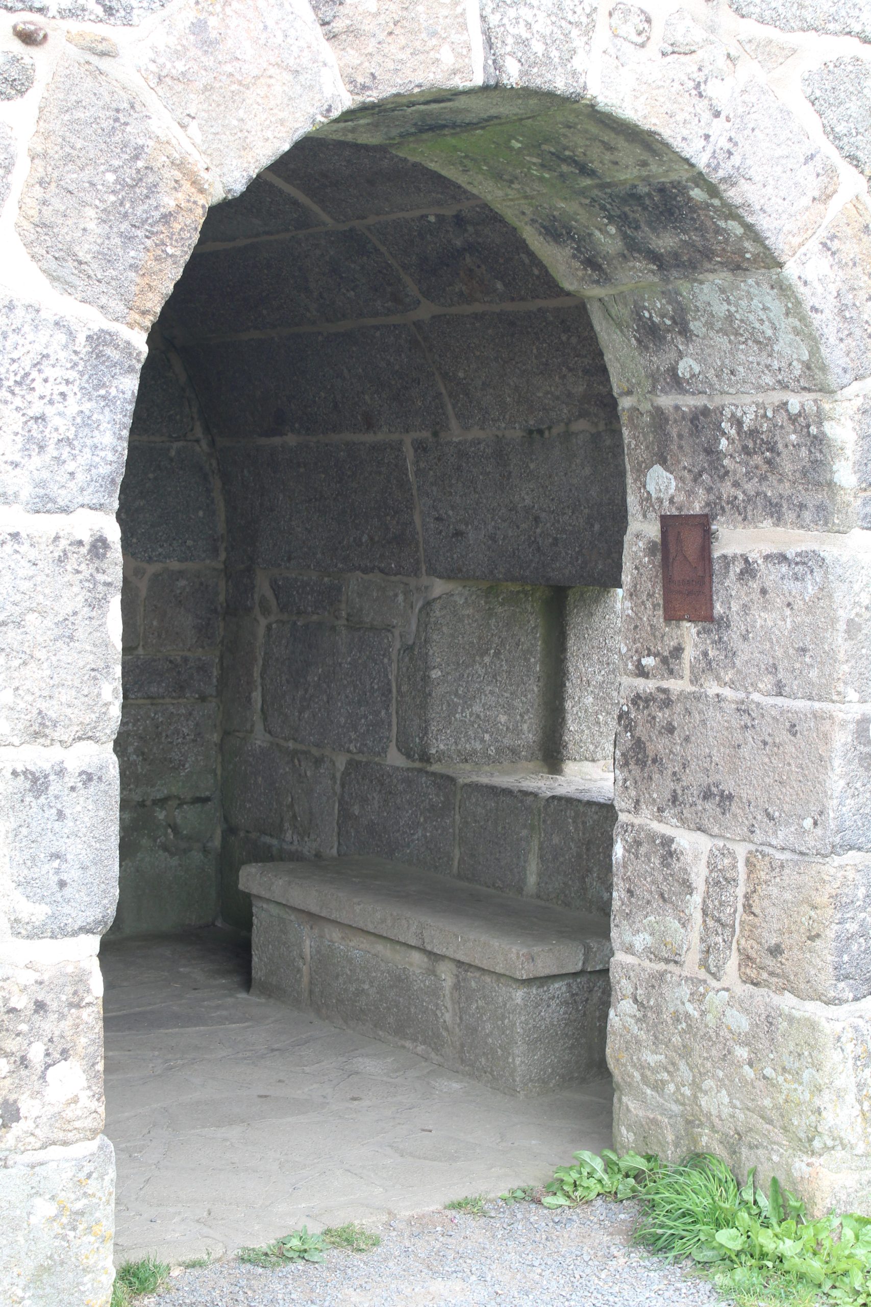 À proximité de la chapelle, on trouve la fameuse fontaine, mais aussi la statue de St Hervé. Taillée dans un bloc de granit de 8,100 T par Jacques Dumas. Originaire de Pédernnec, il a aussi taillé d’autres statues pour la Vallée de Saints.