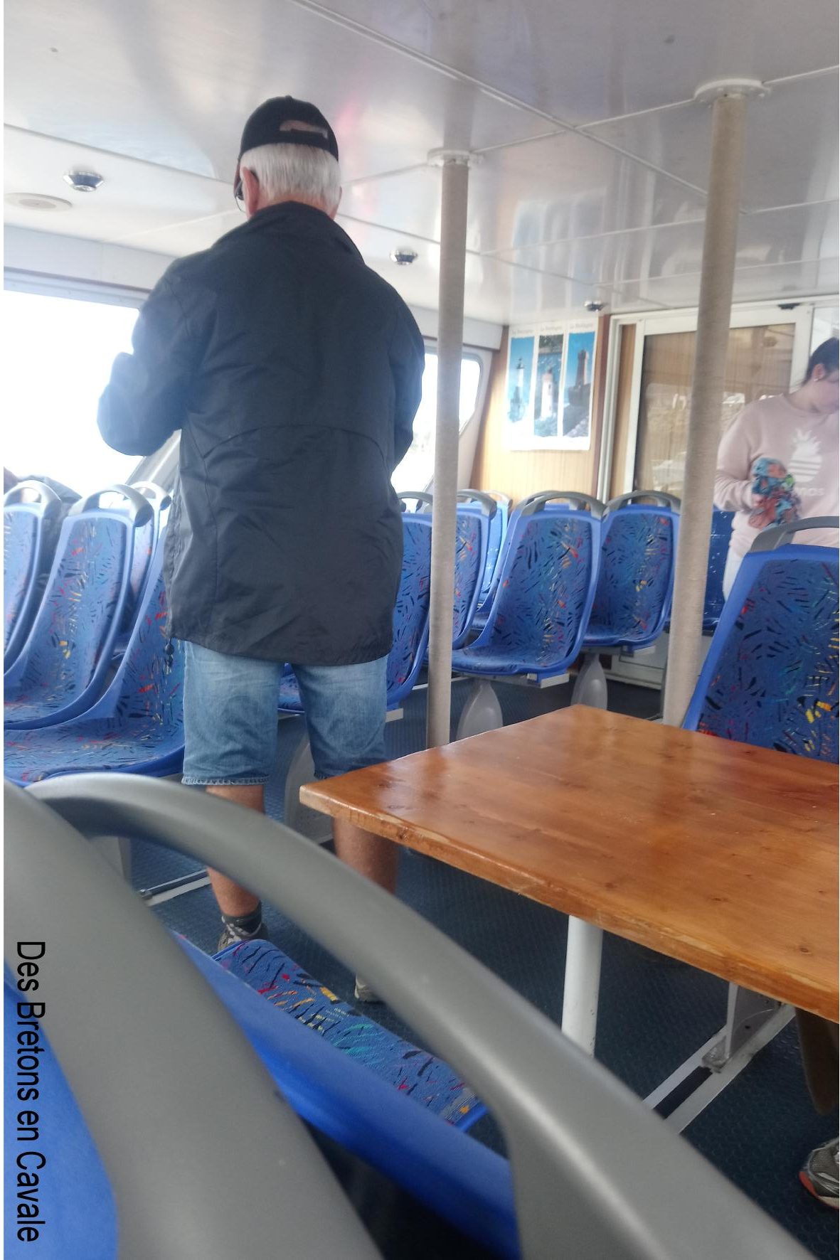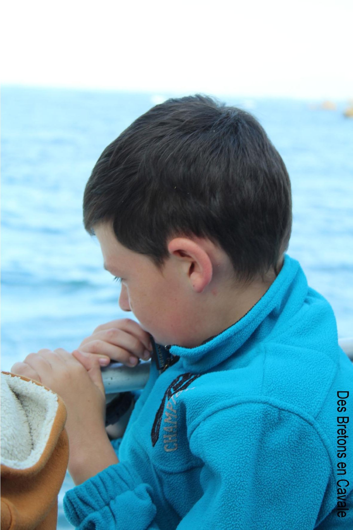 Pas très rassuré au début, il s’est quand même aventuré au bord du bateau. Et bien qu’au début nous nous étions installés à l’intérieur, on avons fini par changer d’avis pour prendre place à l’extérieur !