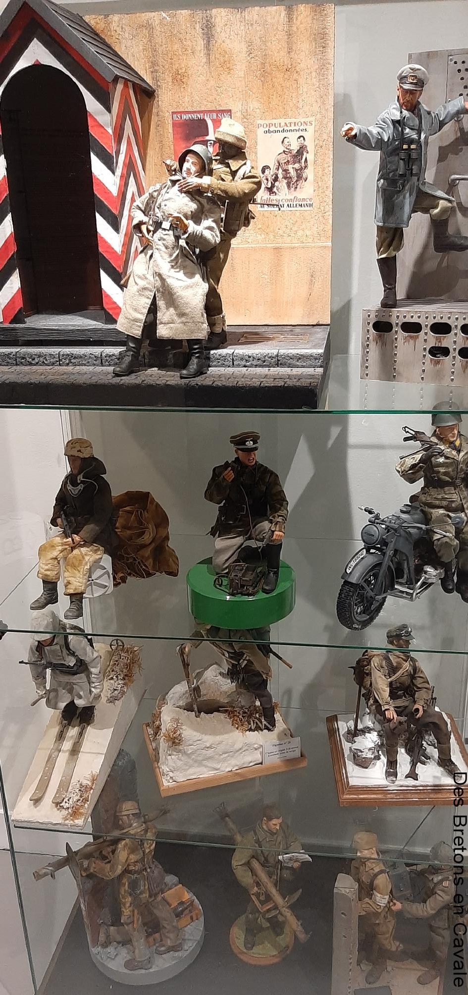 Il y a des mannequins en costume, des véhicules, des reconstitutions de scènes en réelle comme en petite échelle et les décors sont bluffants, des expos de simples figurines, beaucoup d’objets utilisés par les soldats tout comme des objets de la vie courante ect… il y a même la reconstitution d’un blockhaus avec un canon de 50mm KWK.