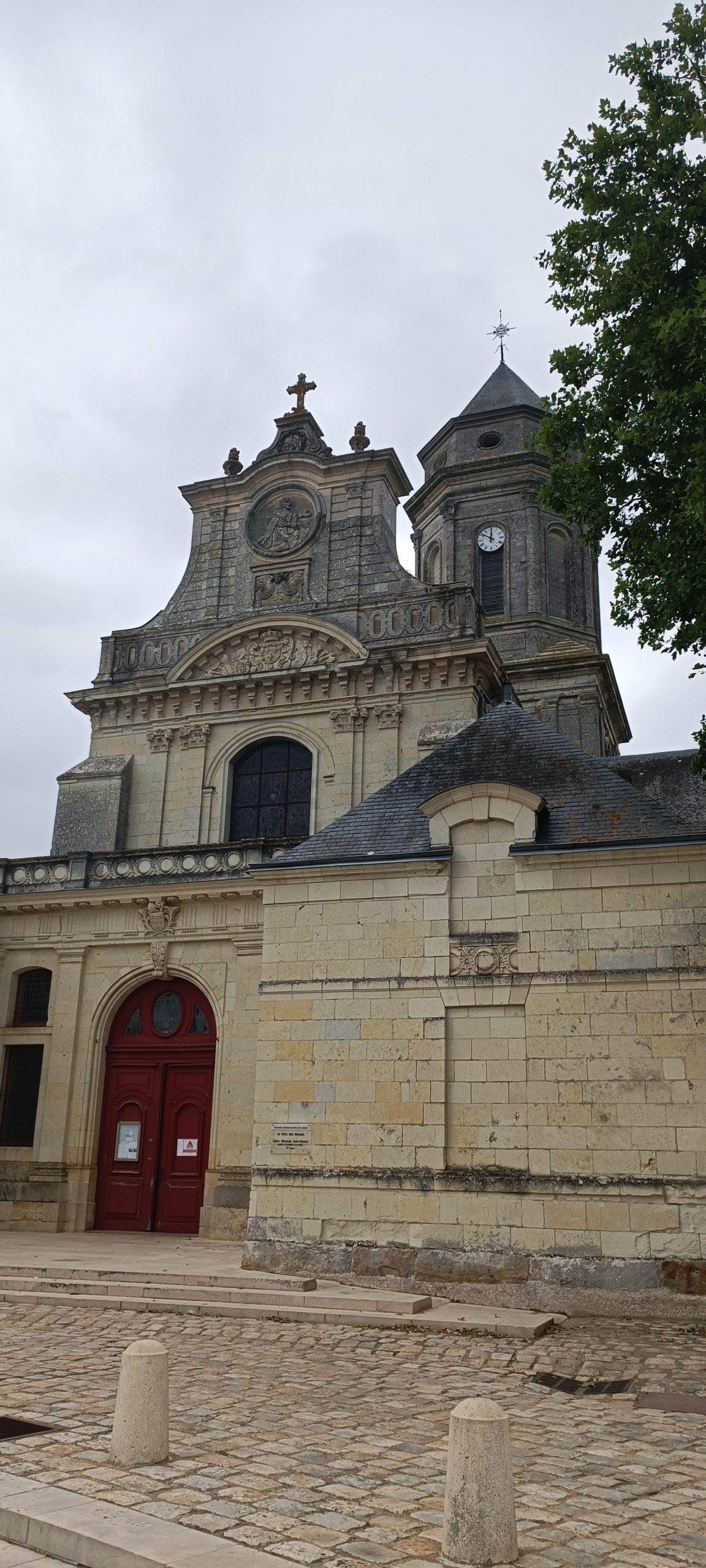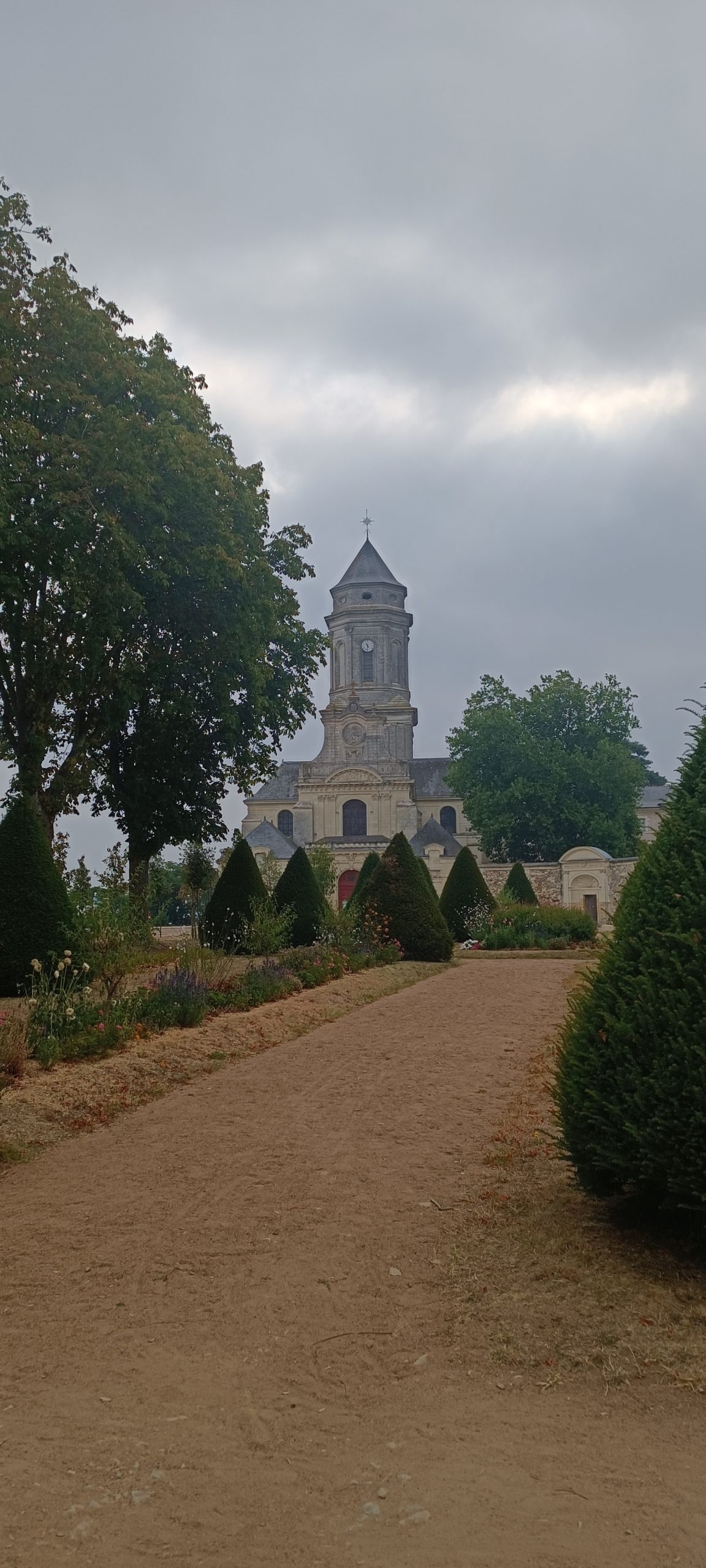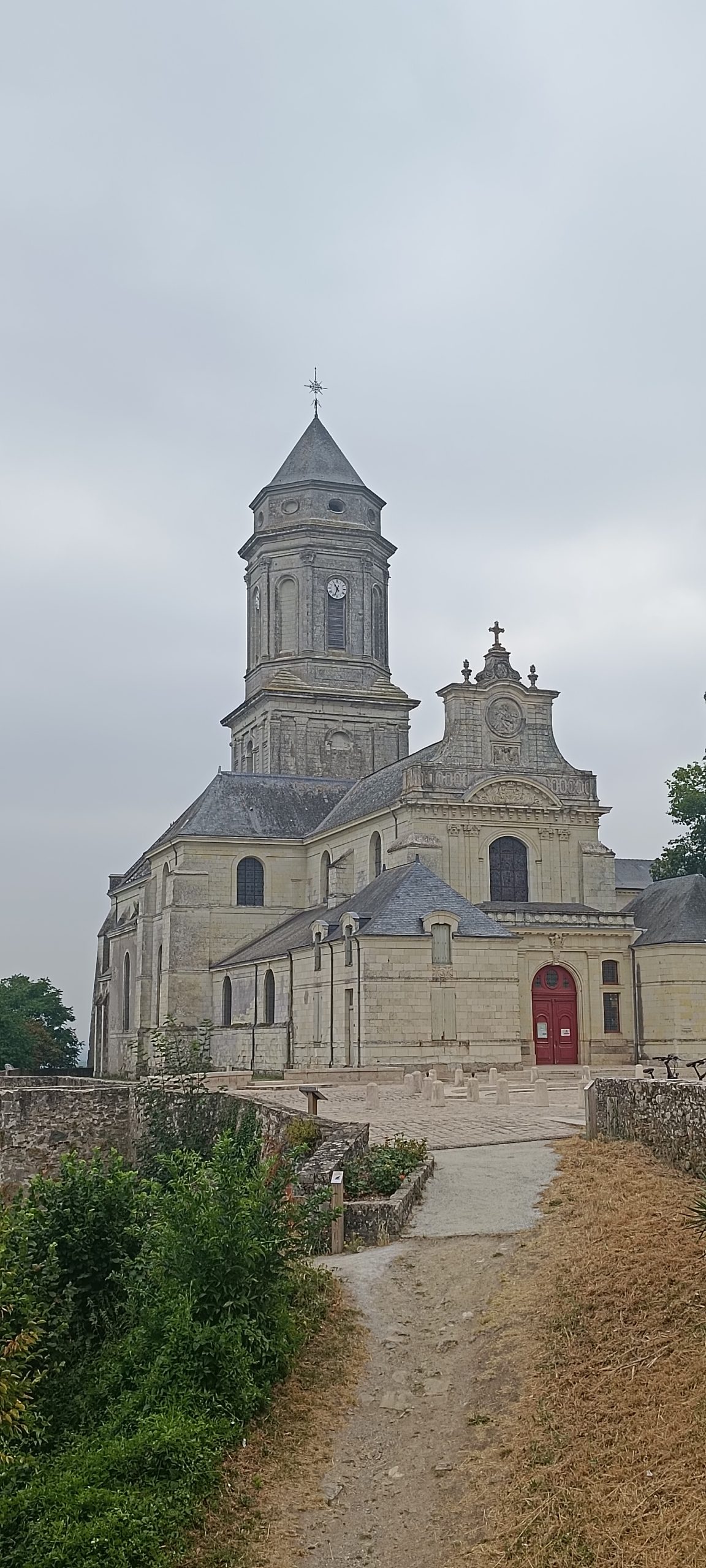 Nous avons trouvé à nous garer sur le parking à coté du cimetière. De là, on accède directement à la cour devant l’église abbatiale avec la vue sur la Loire.