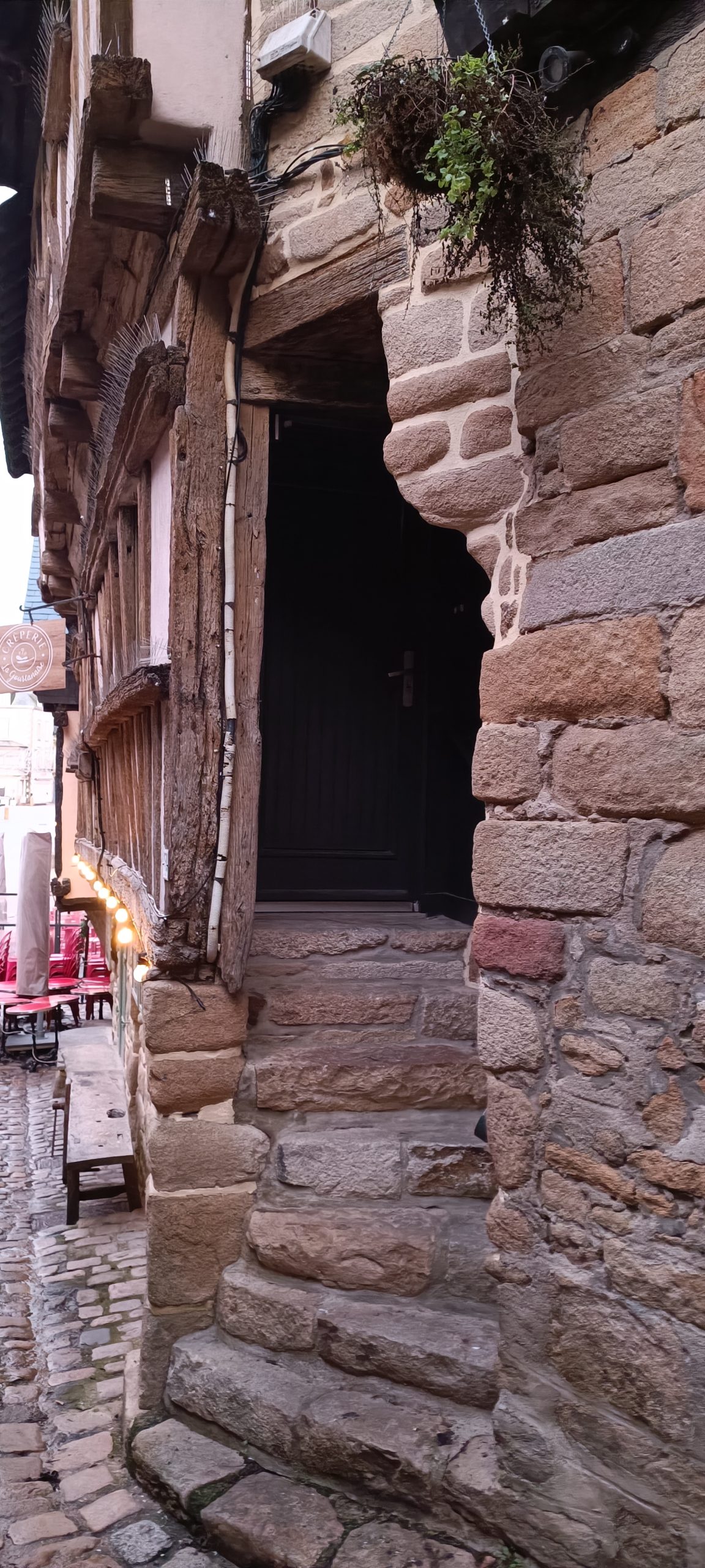 L’avantage en basse saison, c’est qu’il n’y a personne. Et si vous le pouvez venez hors saison car en plein été ici c’est beaucoup beaucoup de monde. Trouver à se garer est une plaie. Mais que voulez-vous, St Goustan mérite vraiment d’être visité ; Ce village est resté comme figé dans le temps. Et en allant fouiller dans son imagination, il suffirait de fermer les yeux pour entendre les hommes débarquer la marchandises des bateaux en entendant henir les chevaux attelés aux carrioles, de la musique sortant de la taverne ou encore le brouhaha de la rue avec les commerçants sur le seuil de leurs échoppes…..oui je sais je pars vite dans mes bulles.