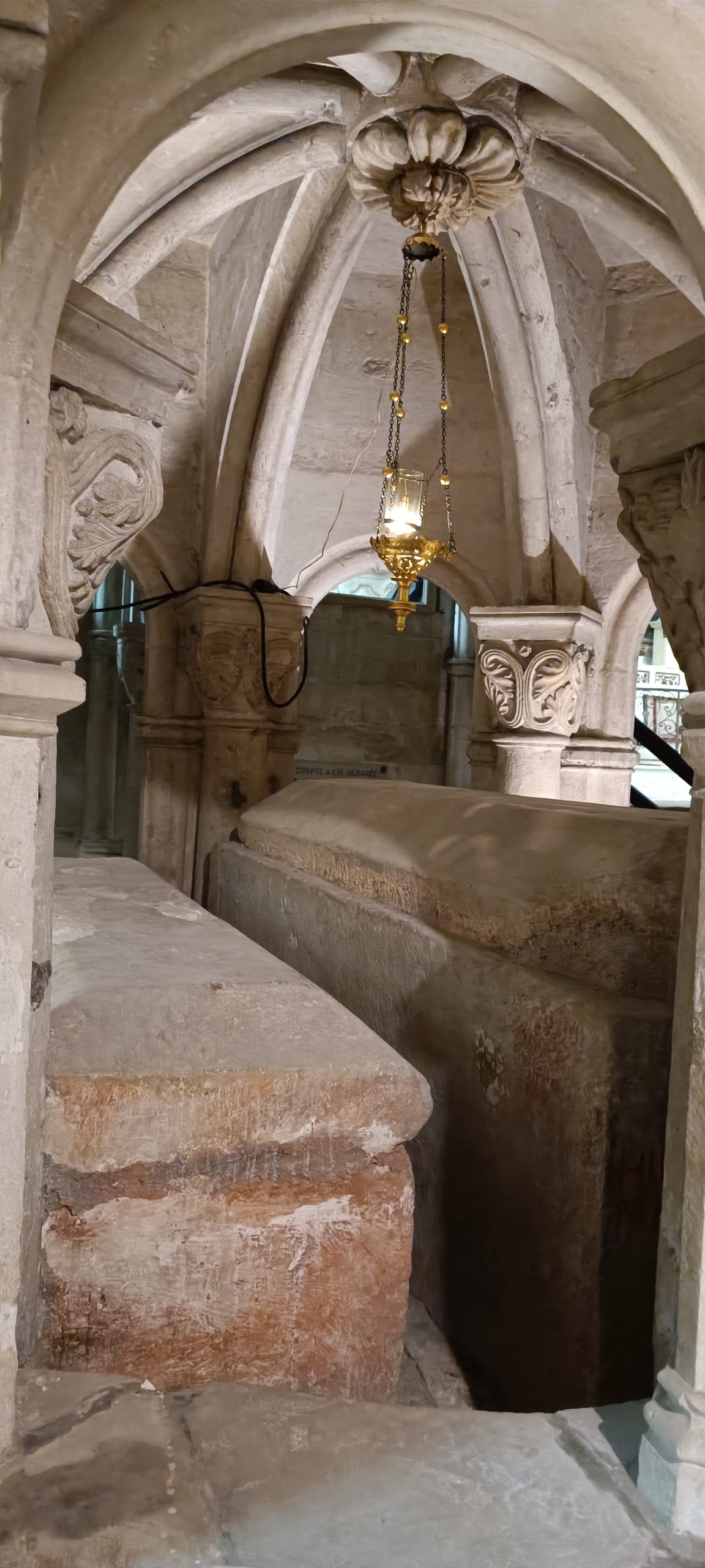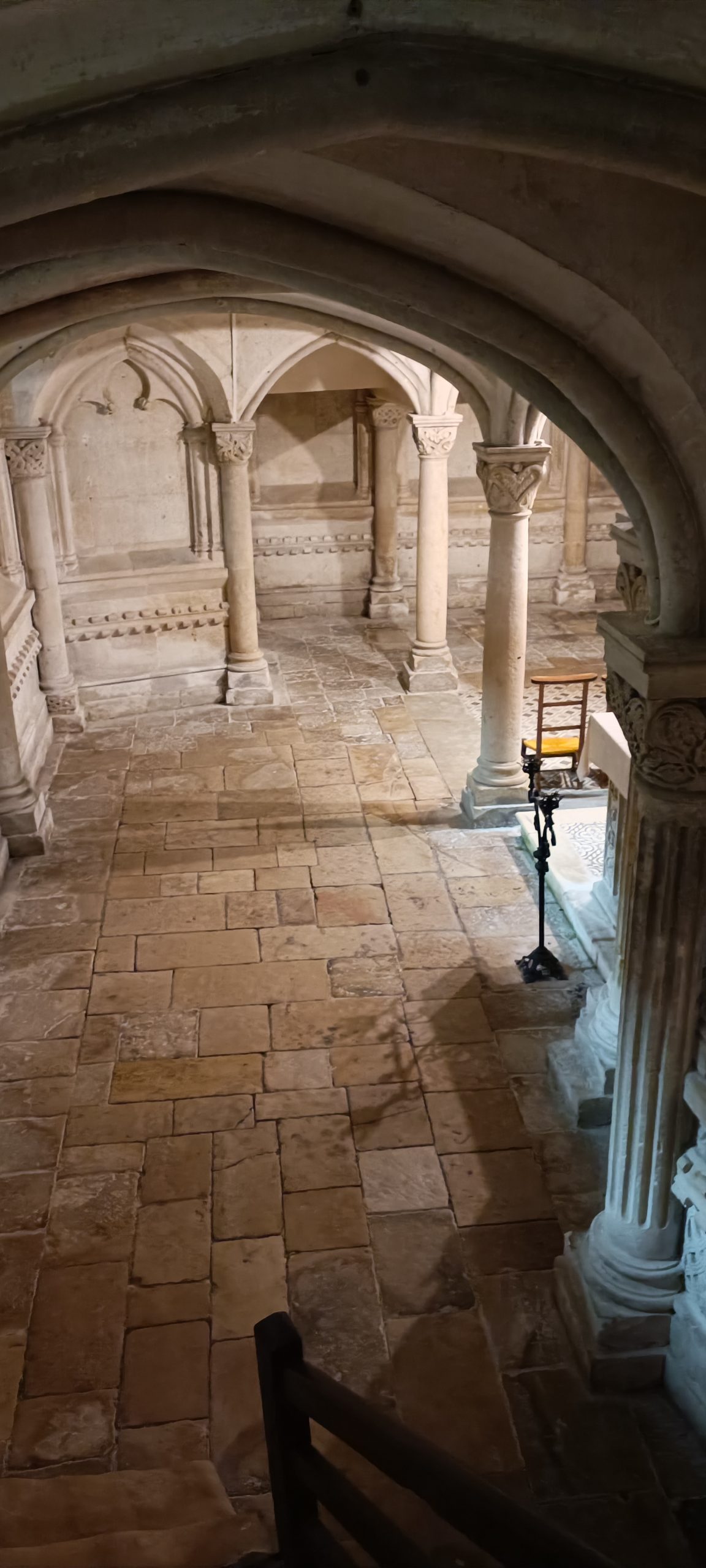 La crypte, il y a les sarcophages et St Maixent et de St-Léger du VI et VIIᵉ siècle.