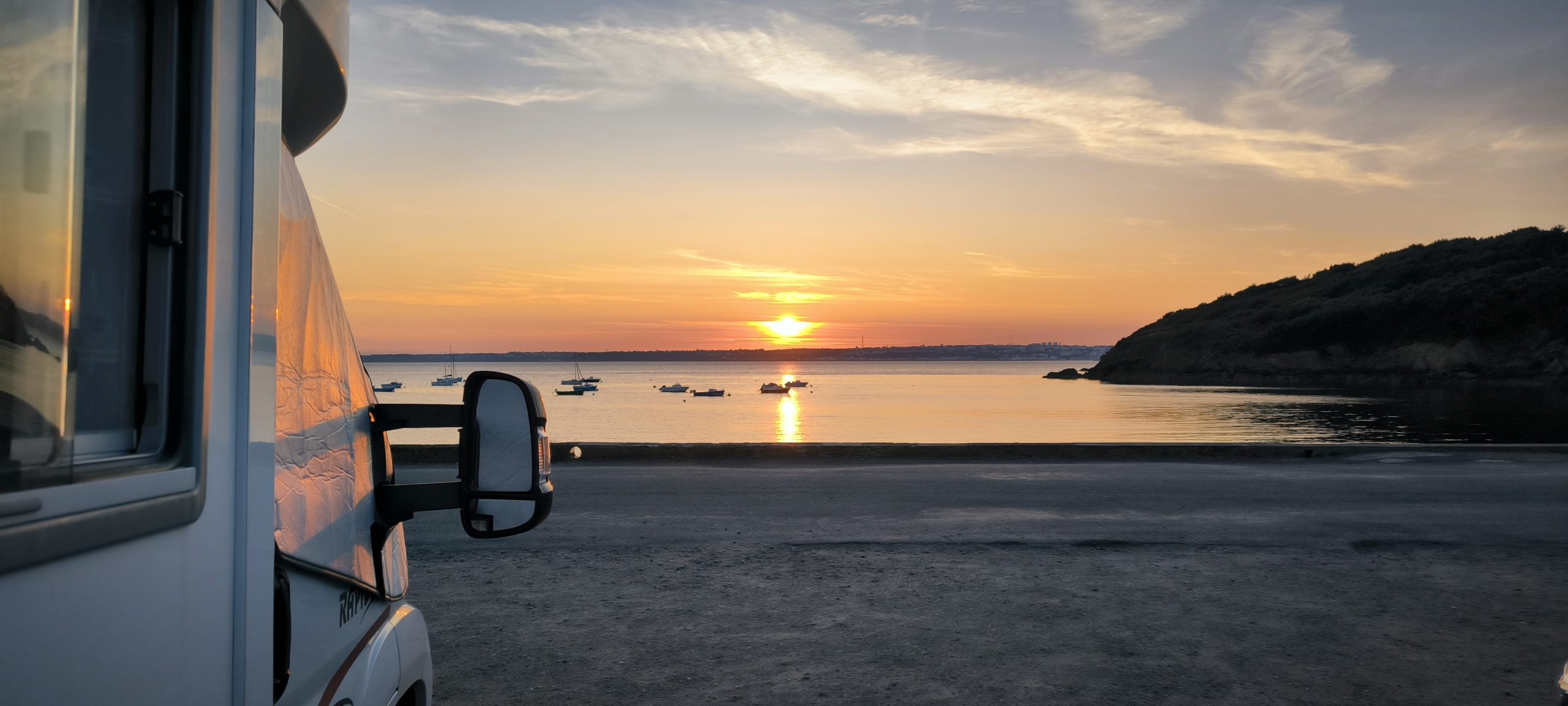 On s’est trouvé un spot pour la nuit au bord de l’eau avec la rade Brest en fond de tableau. Le coucher de soleil était magnifique. J’y ai super bien dormi. Le matin pour profiter un peu des lieux, on a fait une petite randonnée de 4 km qui permet de voir le fort du Corbeau et avec toute la Rade. C’est magnifique surtout que le temps était superbe. Shelby toujours dans le sac, mais j’ai senti son inconfort sur les chemins de terre, les à-coups ne lui plaisaient pas trop à la fin. Il a fallu que l’on retombe sur la route pour rentrer au camping-car pour qu’elle se calme.